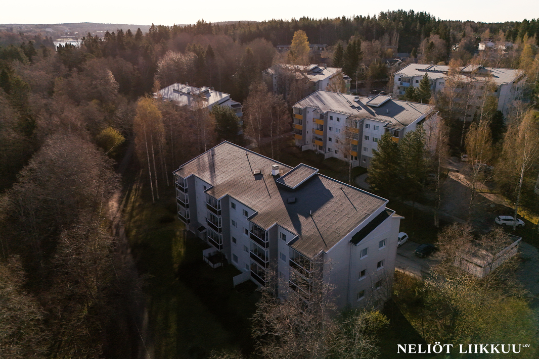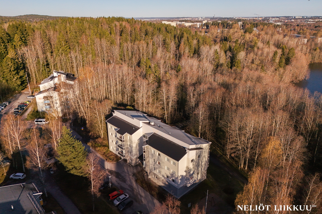 Asunnon pohjaratkaisu on käytännöllinen ja tilava. Kahden makuuhuoneen lisäksi asuntoon kuuluu avara ja valoisa olohuone sekä keittiö joissa on tilaa niin ruoanlaitolle kuin yhdessäolollekin. Kylpyhuone on tilava ja siellä on oma tilansa perheen pyykkihuollolle. Kodin kruunaa lasitettu parveke, jolta avautuvat upeat, rauhalliset näkymät metsään. Parveke tarjoaa täydellisen paikan aamukahvin nauttimiseen tai rentoutumiseen pitkän päivän jälkeen. Säilytystilaa on runsaasti kaapistojen, vaatehuoneen sekä varastojen ansiosta.