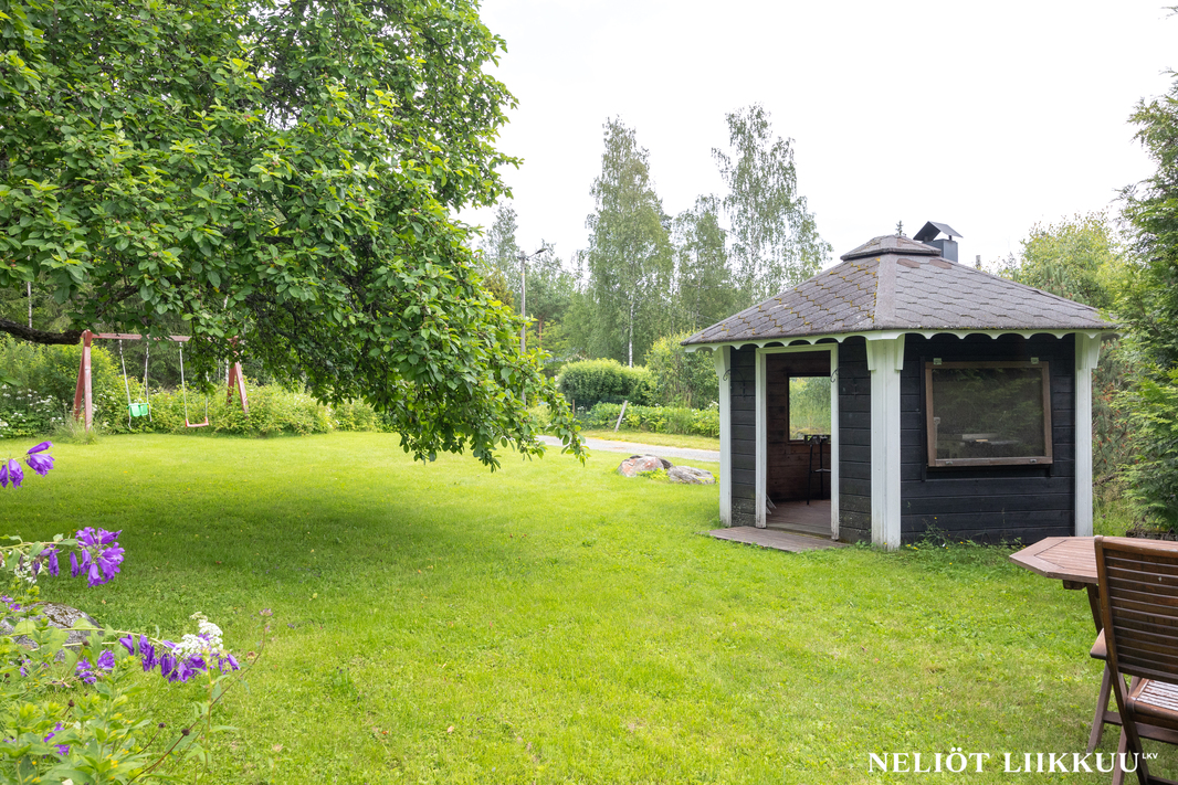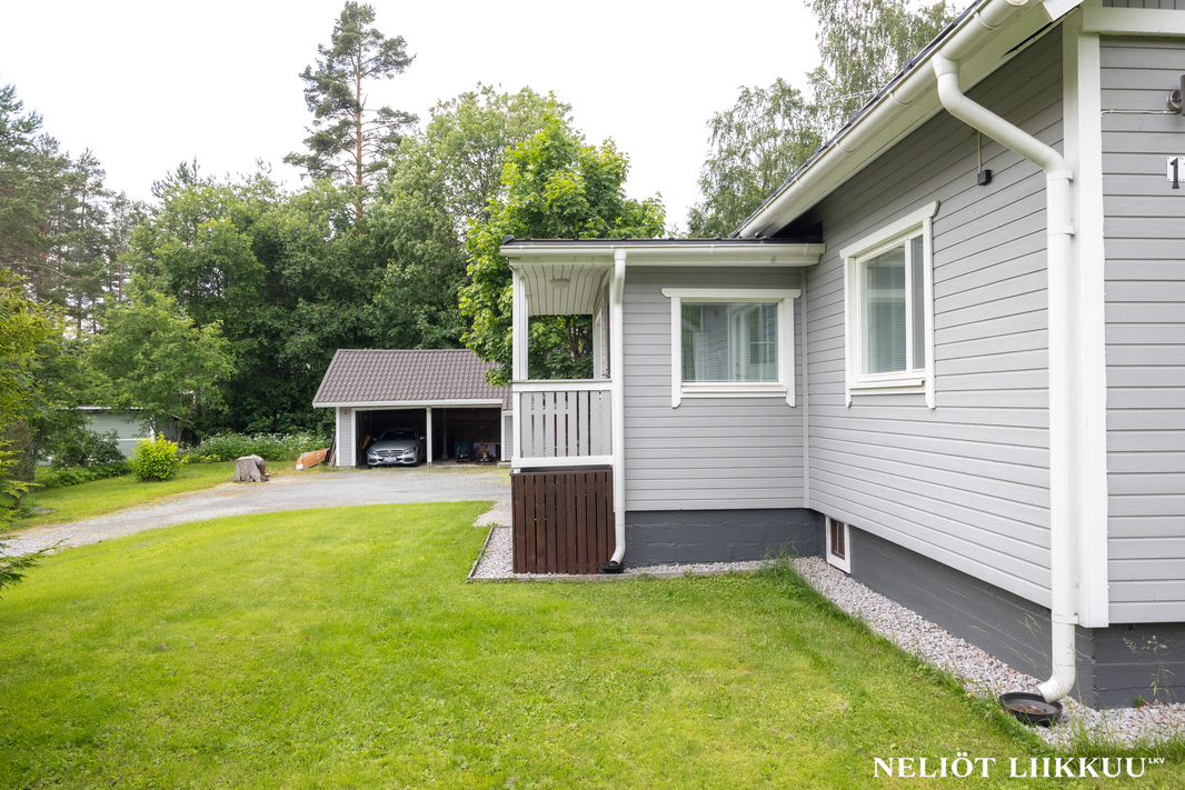 Oma 1800 neliömetrin tontti antaa mahdollisuuden nauttia luonnonläheisyydestä ja omasta rauhasta. Täällä voit rentoutua pihatöiden parissa! Ulkorakennuksessa on tunnelmallinen pihasauna jossa kelpaa saunoa hyvissä löylyissä vapaa-ajalla. Säilytystilaa löytyy varaston ja vaatehuoneen ansiosta paljon. Sähkölämmityksen lisäksi talossa on ilmalämpöpumppu sekä tulipesä. Auton saat ajaa kätevästi suojaan katokseen, johon mahtuu kaksi autoa.