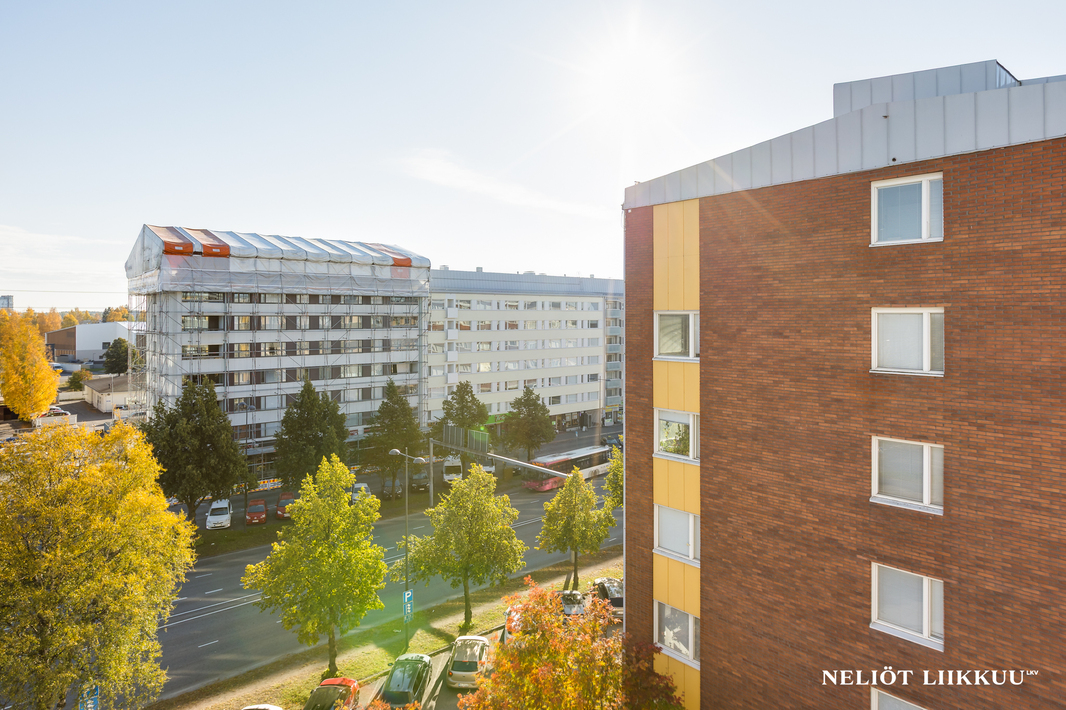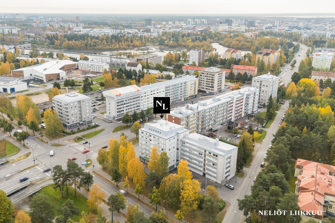 Tämä 6. kerroksen kolmio löytyy Tuiran sydämestä Merikoskenkadulta. Oululaisille talo on tuttu pankkihistoriastaan. Nykyisellään talon alakerrassa palvelee muun muassa apteekki. Taloyhtiö on tosi hyvin hoidettu ja talon ulkokuori piha-alueineen sekä sisätilat huokuvatkin uudenkarheutta saneerausten jäljiltä.