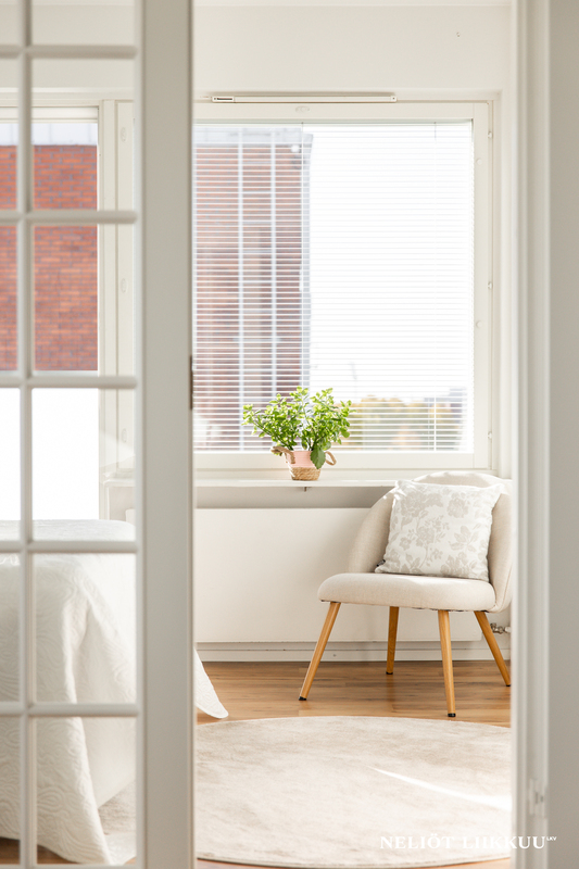 Valoisuus ja kotoisuus läikähtävät suoraan sydämeen ja avarat tilat tekevät tästä kolmiosta poikkeuksellisen houkuttelevan.