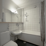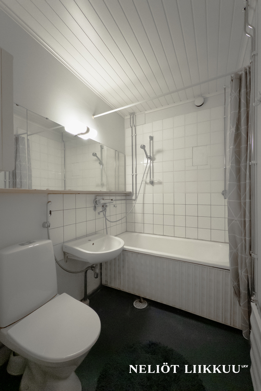 | Kylpyhuoneen kuvaus | Varustus: suihku, kylpyamme, peili, allas, wc-istuin. |