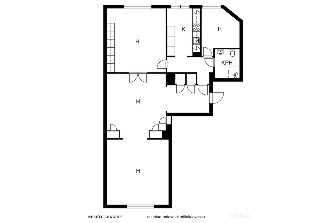| Huoneistoselitelmä | 3-4h+k+kph (yhtiöjärjestyksen mukaan 3 h+k) |