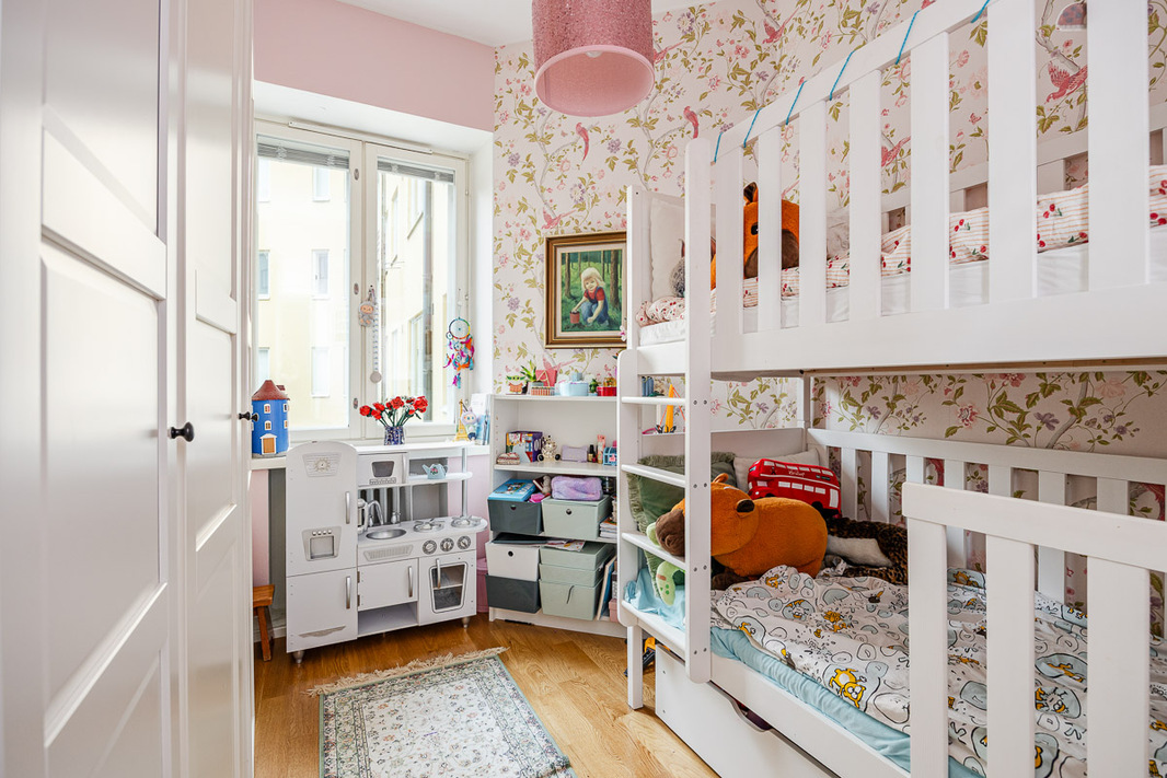 | Makuuhuoneen kuvaus | Makuuhuoneiden lattiat parkettia ja seinät maalattu |