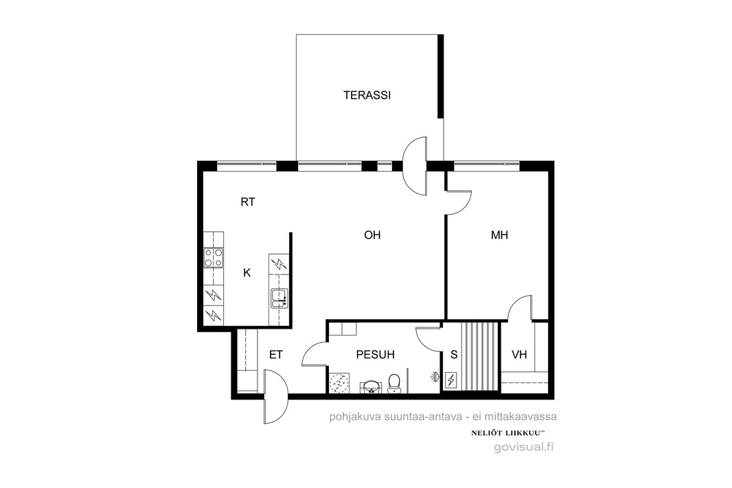 | Huoneistoselitelmä | 2h+k+kph+s+terassi+piha |