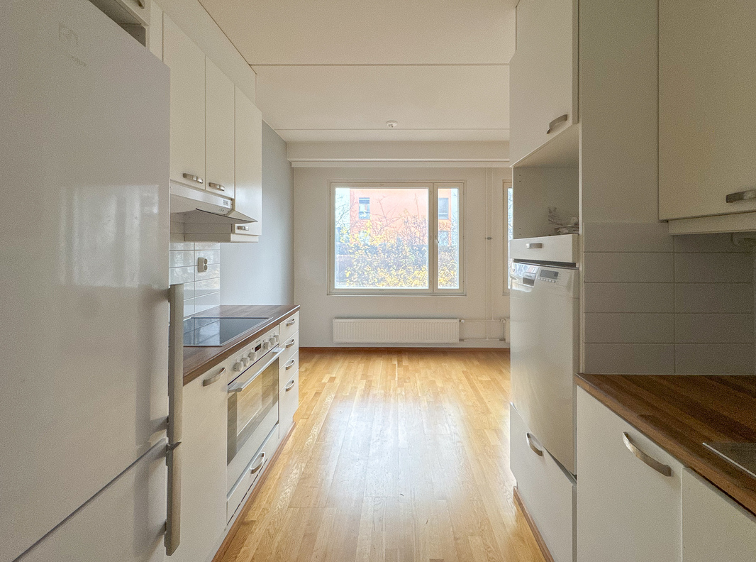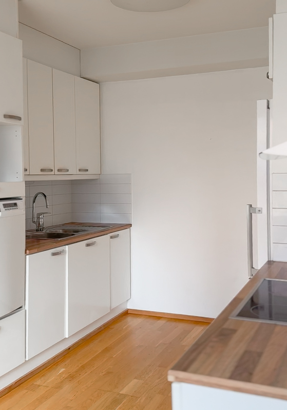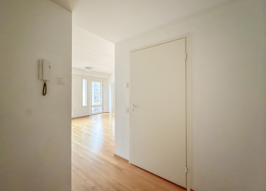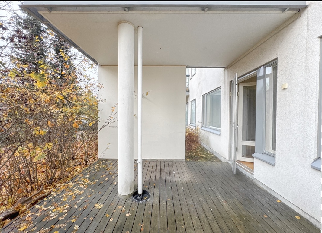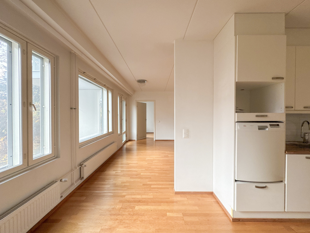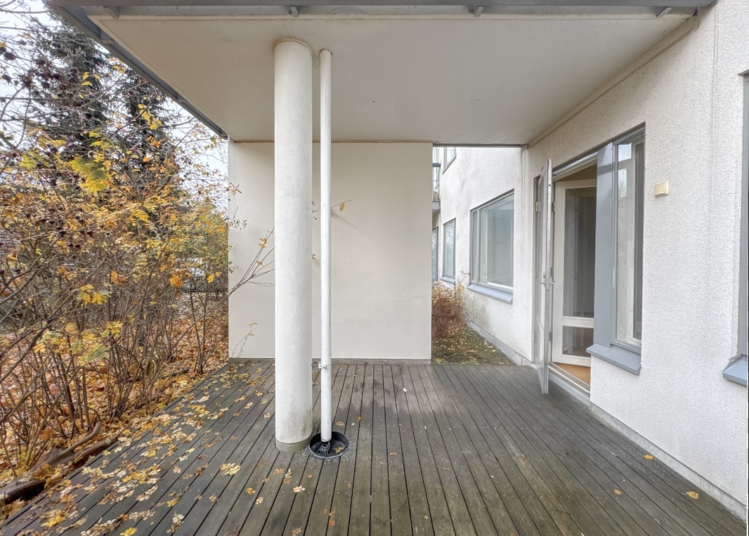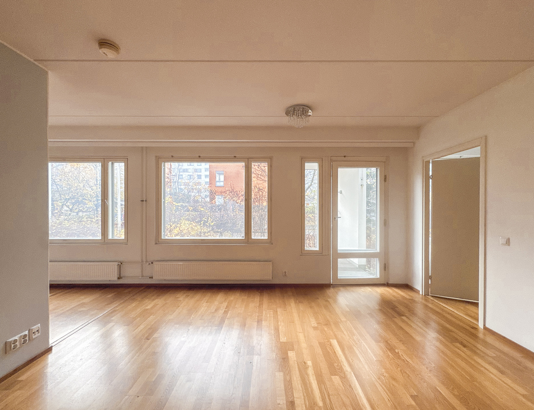 Tilava ja valoisa huoneisto loistavalla sijainnilla – oma sauna, terassi sekä pieni piha!