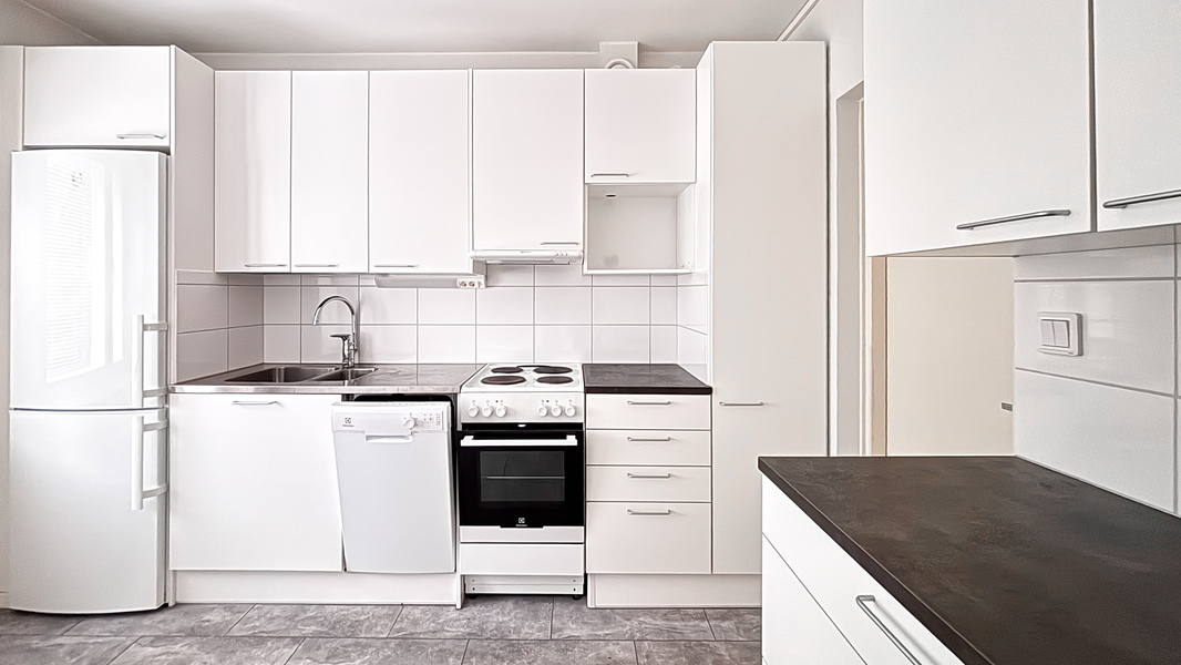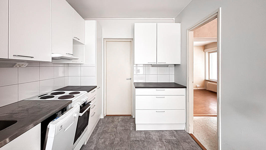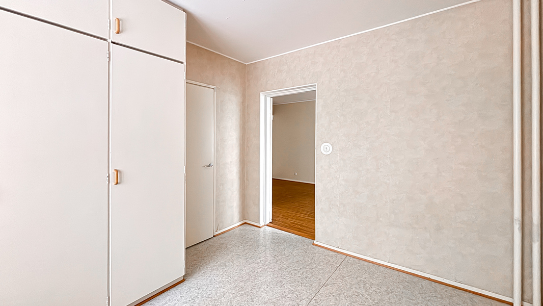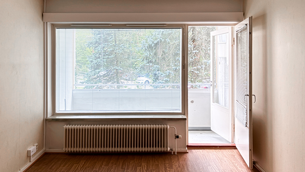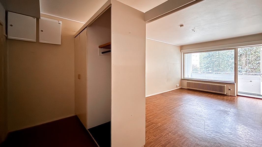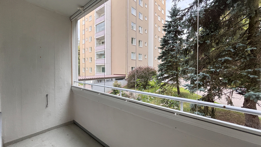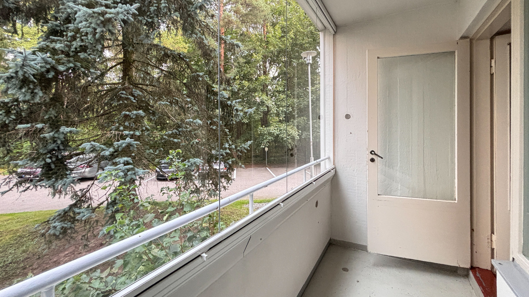 Eteisessä on hyvin kaappitilaa säilytykseen. Avara ja valoisa olohuone jatkuu lasitetulle parvekkeelle, josta avautuvat puistomaiset näkymät – täydellinen paikka rentoutua. Tilava makuuhuone tarjoaa runsaasti säilytystilaa kiinteiden kaapistojen ansiosta. Keittiö on remontoitu ja varusteltu nykyaikaisilla kodinkoneilla, mukaan lukien astianpesukone. Myös kylpyhuone on remontoitu ja siistissä kunnossa, ja sieltä löytyy paikka pyykinpesukoneelle.