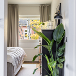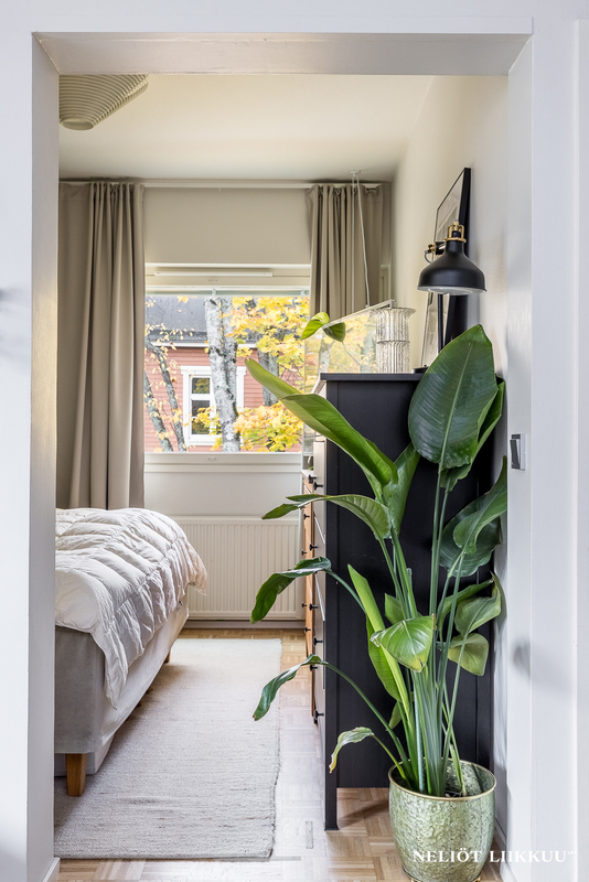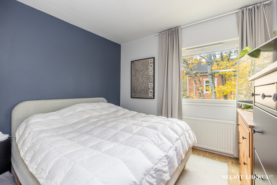 Asunnossa on kaksi hyvänkokoista makuuhuonetta, molemmista vehreät näkymät. Tyylikkäässä kylpyhuoneessa on myös paikka pesukoneelle. Huoneisto sijaitsee kaksikerroksisen talon ylimmässä kerroksessa.