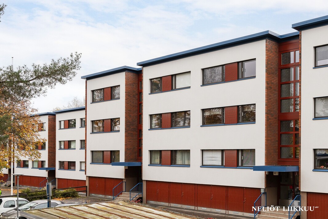 | Tehdyt remontit | 2024-2025 lukituksen uusiminen 2022-2024 laaja linjasaneeraus (sis. vesi- ja viemärijärjestelmien uusiminen, osa sähköistä, kylpyhuoneiden uusiminen, saunaosastot, autojen latauspisteet jne.), siirtyminen hybridilämmitykseen (maalämpö + LTO + aurinkopaneelit) 2021 julkisivun kasvustonestokäsittely 2020 linjasaneerauksen hankesuunnitelman laatiminen, salaojien kartoitus ja kuntotarkastus 2019 digitaalisten piirustusten laatiminen, laajakaistaliittymä huoneistoihin 2018 haitta-ainekartoitus 2017 kylpyhuoneiden ja vesikalusteiden kuntotutkimus, ilmanvaihdon nuohous ja säätö 2016 julkisivun, katon ja parvekkeiden peruskorjaus, parvekeovien ja parvekkeiden ikkunoiden uusiminen sekä portaikkojen maalaus 2010 julkisivun ikkunoiden uusiminen (pl. parvekkeet), salaojien ja sadevesiviemäreiden kunnostus sekä pihan asfaltoinnin uusiminen 2009 ilmanvaihdon linjapuhaltimien uusiminen ja ilmamäärein säätö 2004 lämmönsiirtimien ja patteriventtiilien uusiminen sekä patteriverkoston perussäätö 2002 antenniverkon kunnostaminen ja elementtisaumojen uusiminen, lukitusten uusiminen ja KTV-liittymä |