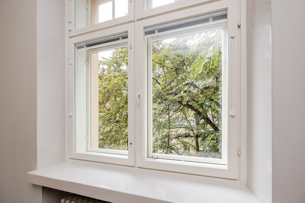 Neljännen kerroksen valoisa kulmahuoneisto sisäpihan rauhassa hyvässä yhtiössä.