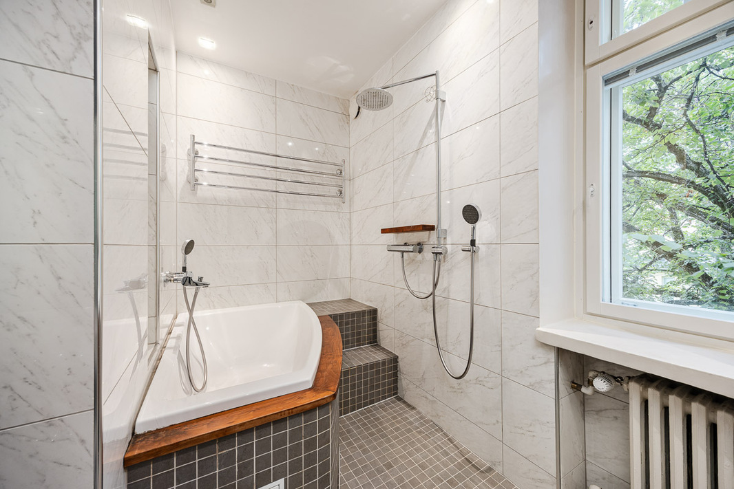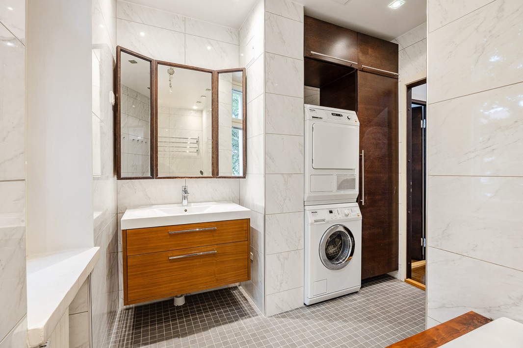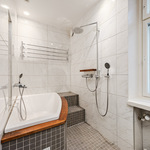 | Kylpyhuoneen kuvaus | Sadevesisuihku, amme, peili, allaskaappi, pyyhekuivain, pesukoneliitäntä, pyykinpesukone ja kuivausrumpu. Lattia ja seinät laattaa. Kylpyhuone on uusittu taloyhtiön putkiremontin yhteydessä vuonna 2012 |
