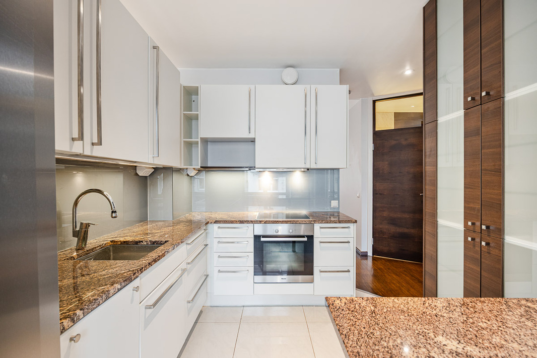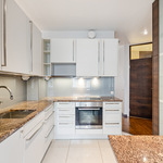| Keittiön varustelu | Integroitu astianpesukone, jääkaappi/pakastin, keraaminen liesi, erillisuuni ja liesituuletin (suodatin). Kivitasot, saareke ja hyvin kaappitilaa. Lattia laattaa ja seinät maalattu |