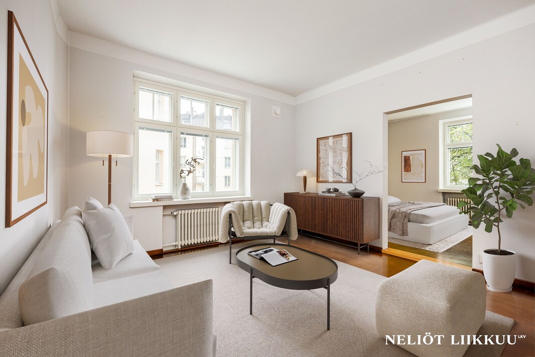 | Palvelut | Lähikaupat ja Töölön kirjasto vieressä. Vehreät puistot ja merelliset ulkoilumahdollisuudet alkavat kotiovelta. Hyvät liikenneyhteydet ratikoilla ja busseilla |