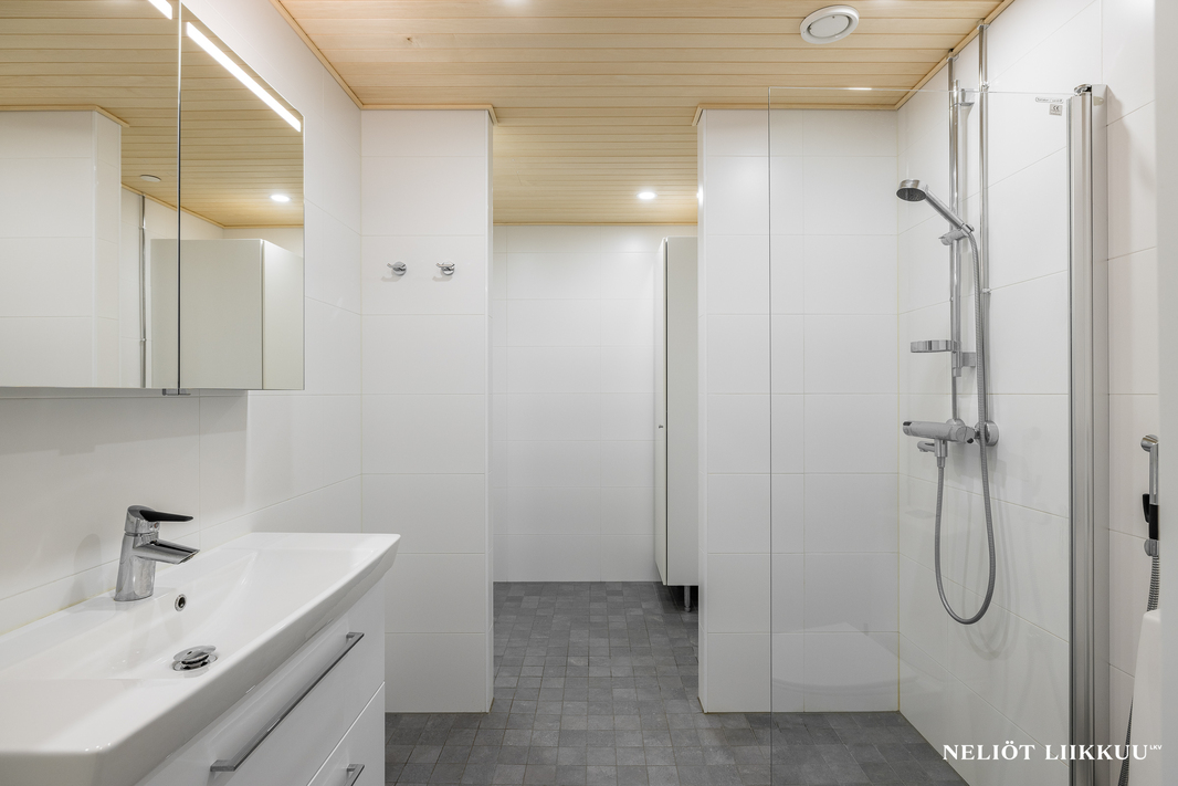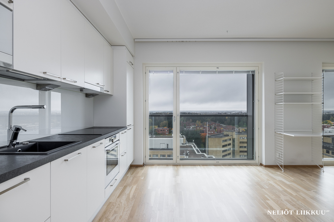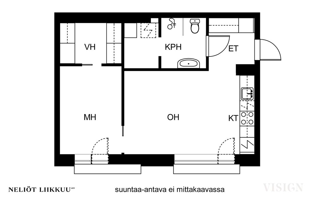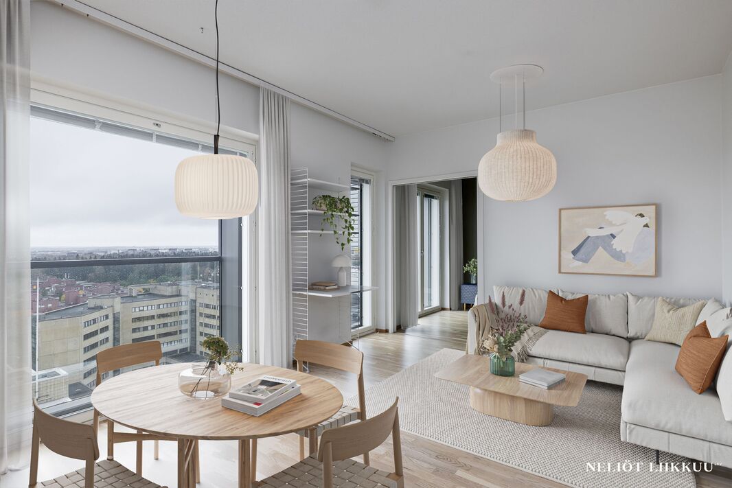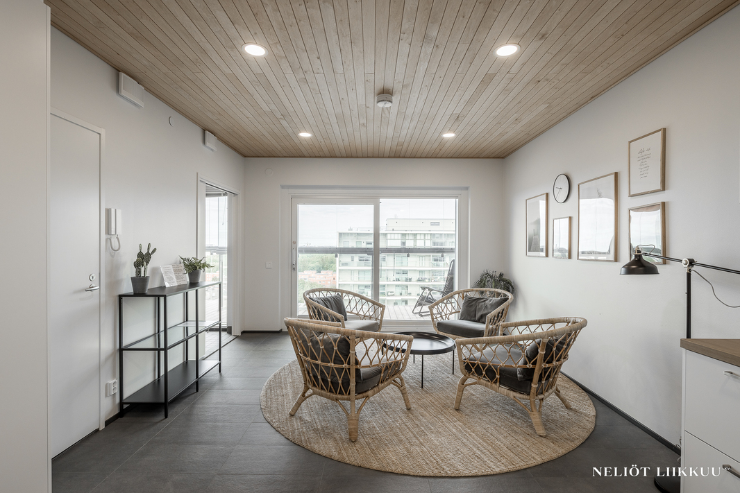 Hyvällä kaksion pohjaratkaisulla varustettu koti. Modernissa keittiössä runsaasti kaappi-, sekä laskutilaa. Olohuoneessa hyvin tilaa sohvaryhmälle sekä ruokailuryhmälle. Makuuhuoneen puolelta käynti vaatehuoneeseen. Kylpyhuoneessa tyylikkäät ja harmoniset materiaalit. Koko huoneistossa lattialämmitys sekä koneellinen ilmanvaihto.