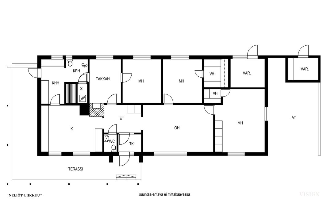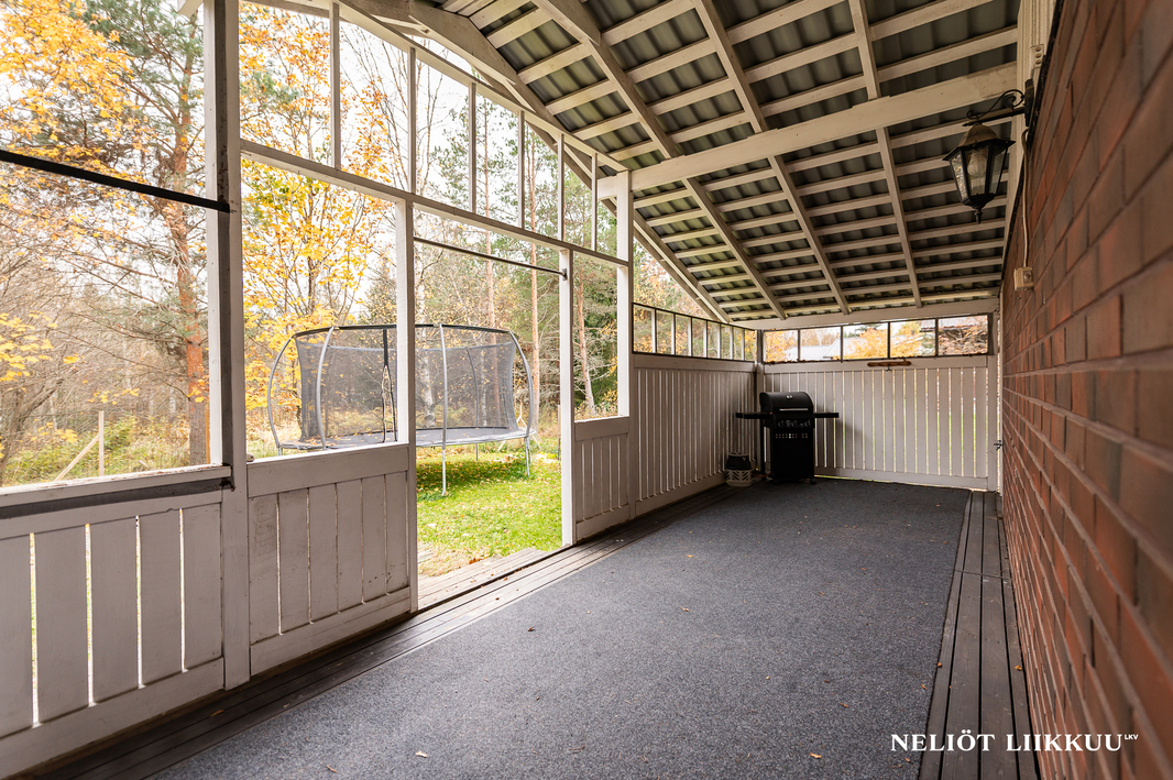 Yksitasoisuus helpottaa lapsiperheen arkea ja asumista, pohjakuva on toimiva ja muunneltavissa, kolme makuuhuonetta, valoisa olohuone, takkahuone, keittiö, kodinhoitohuone, saunaosasto sekä erillinen wc. Kodin sydän on viihtyisä takkahuone, josta on suora yhteys saunaan ja kylpytiloihin. Kodinhoitohuoneesta on käynti suoraan ulos, mikä tekee arjesta sujuvaa.