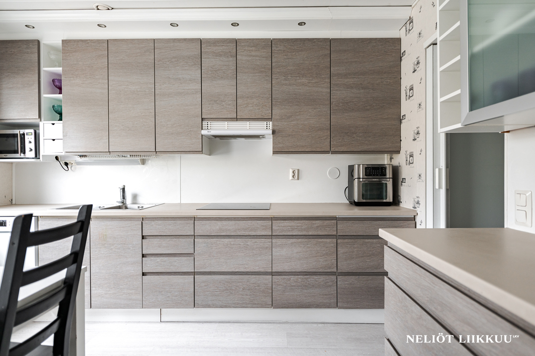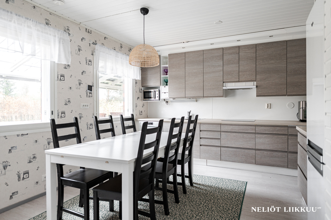 | Keittiön varustelu | Valoisa ja kaunis keittiö, runsaasti kaappitilaa |