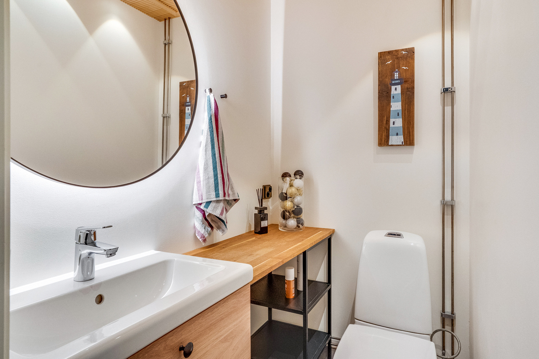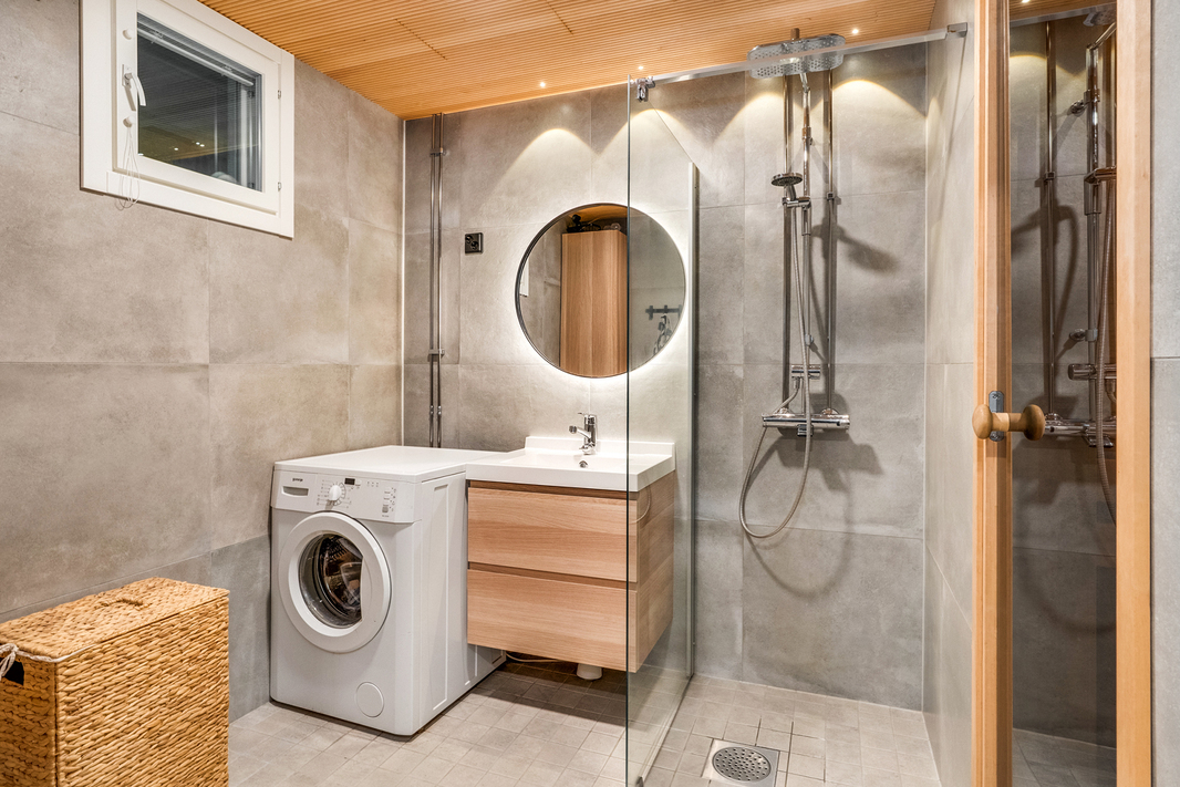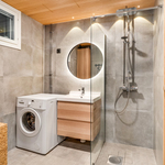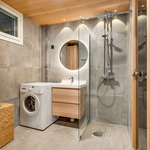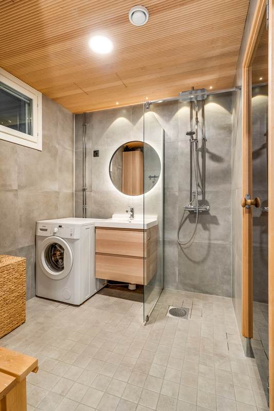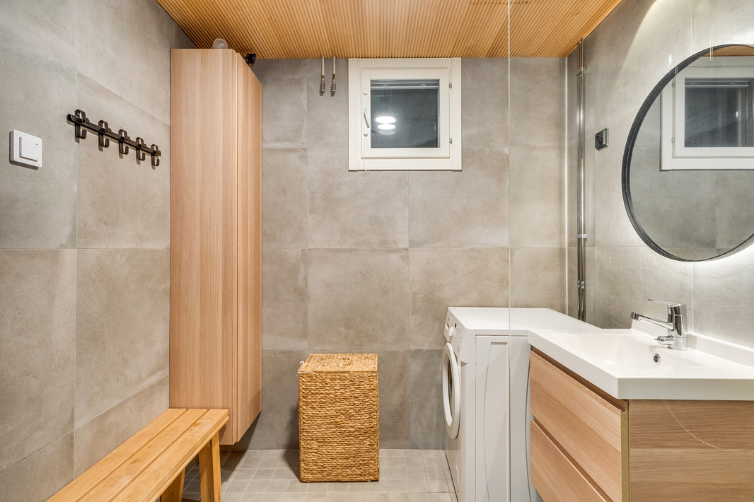 | Kylpyhuoneen kuvaus | Kylpyhuone saneerattu 2021. Sadesuihku Oras. Himmennettävät led valot. Allaskaapisto ja korkea kaapisto. |
