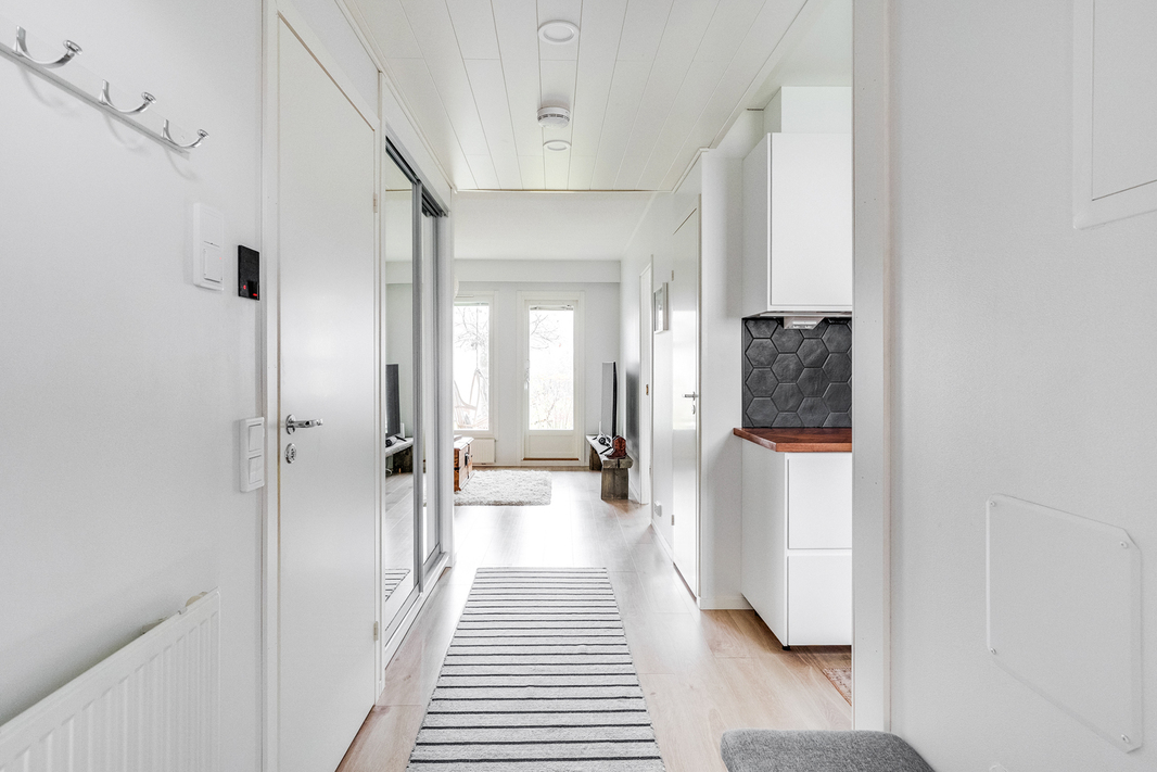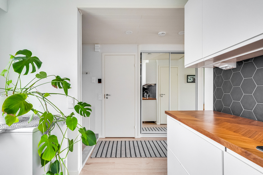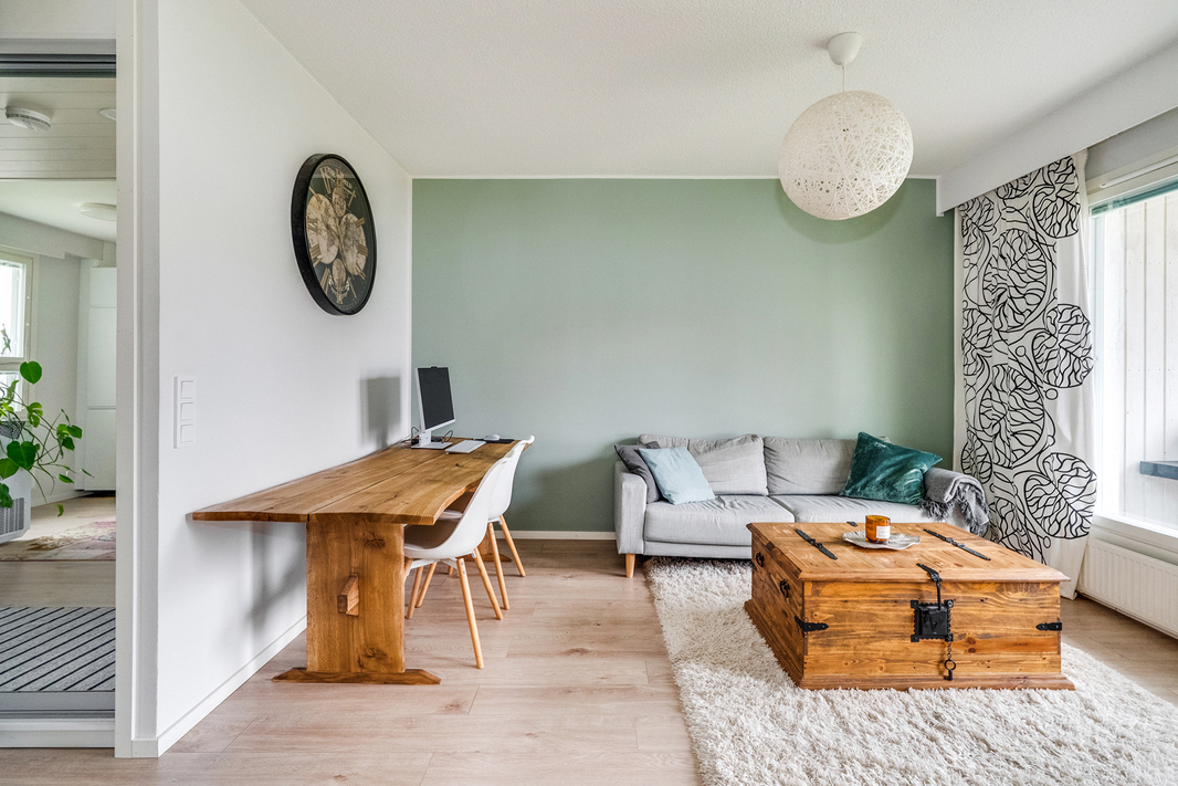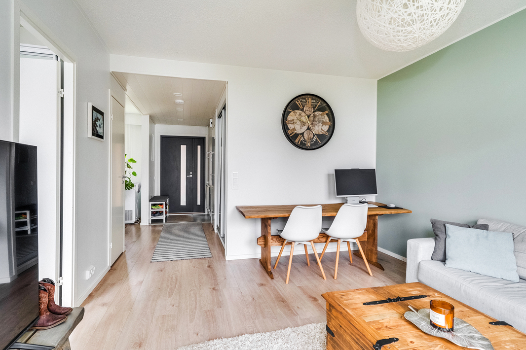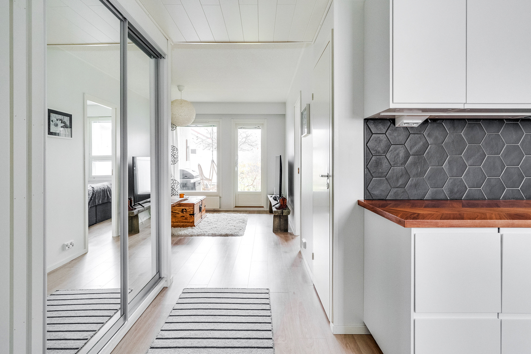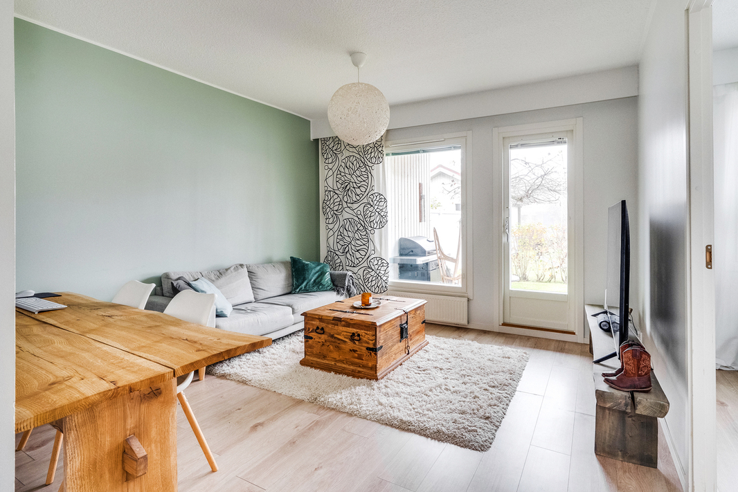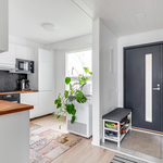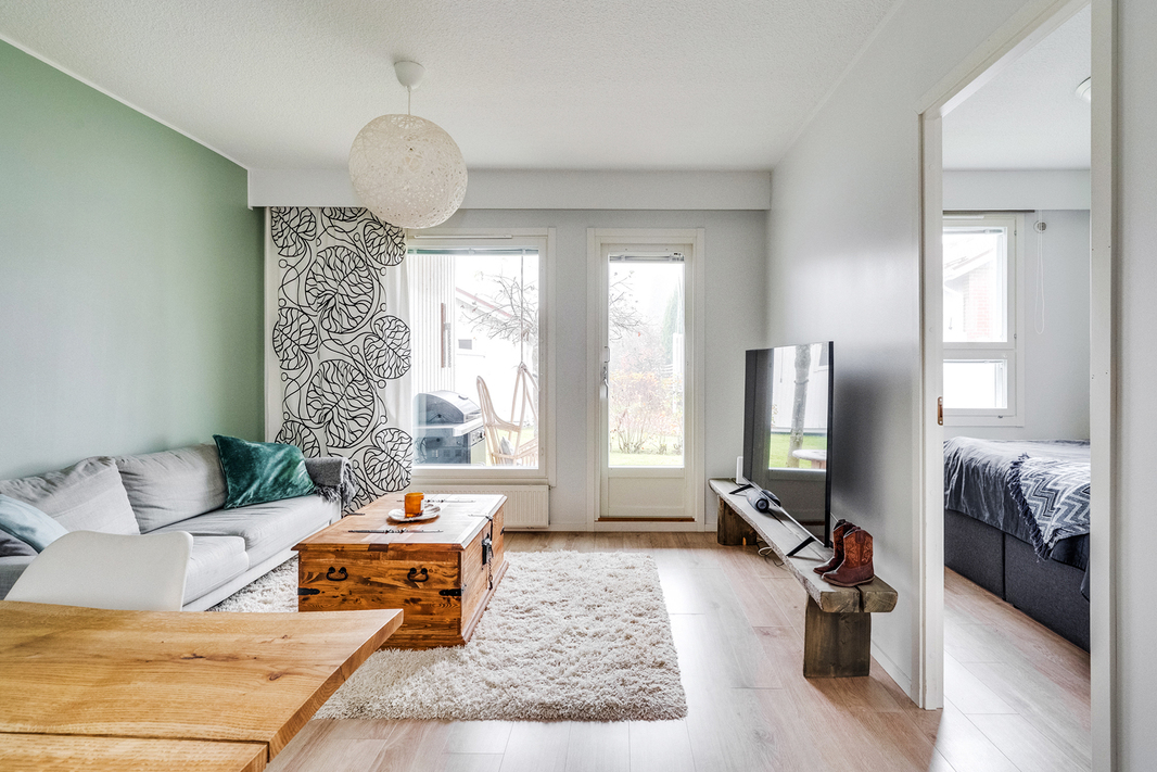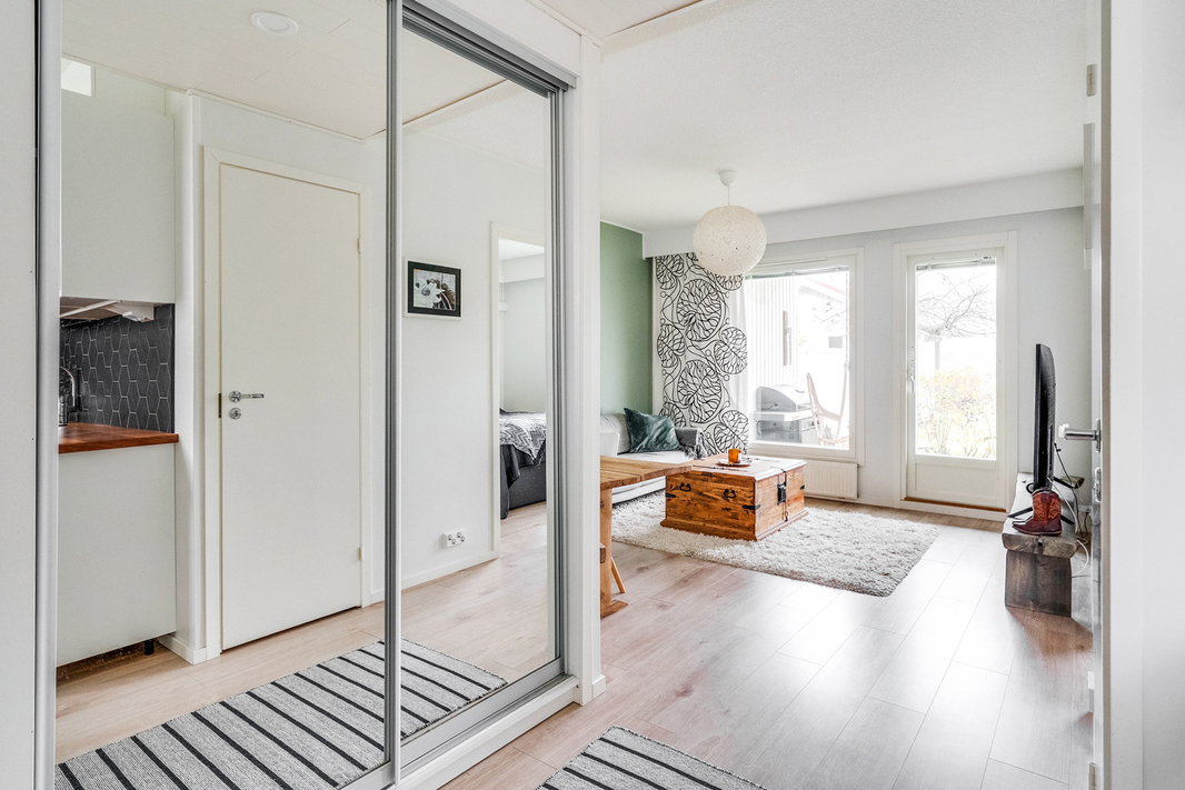 Nyt vapautumassa tyylikäs kaksio hyvien liikenneyhteyksien ääreltä. Tämä asunto on saanut täysin uuden lookin vuonna 2021 valmistuneessa remontissa ja tehty laadukkailla materiaaleilla, joten uuden asukkaan ei tarvitse kuin kantaa omat tavaransa sisään! Kaikki huoneet ovat tilavia ja valoisia. Olohuoneesta on kulku katetulle terassille, jossa on mukava kesällä grillailla ja viettää aikaa. Makuuhuoneessa hyvin säilytystilaa kaapiston sekä vaatehuoneen ansiosta. Asumismukavuutta lisää ilmalämpöpumppu kesähelteillä sekä erillinen wc. Ulko-oven vieressä on lisäksi myös erillinen kylmä varasto.