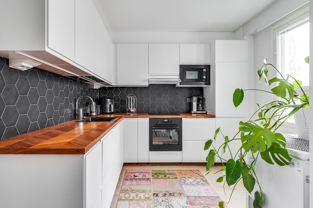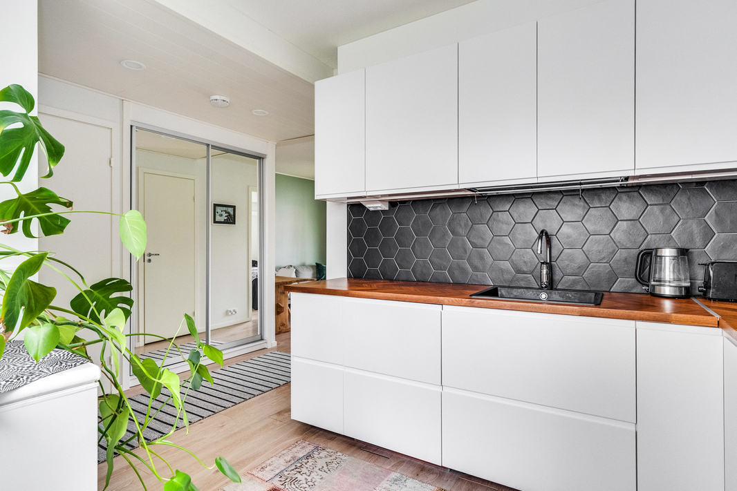 | Keittiön varustelu | Keittiö saneerattu 2021.Ikean keittiö. Välitila laatoitettu. Keittiön työtaso viilu. Keittiön lattia hypridi. |