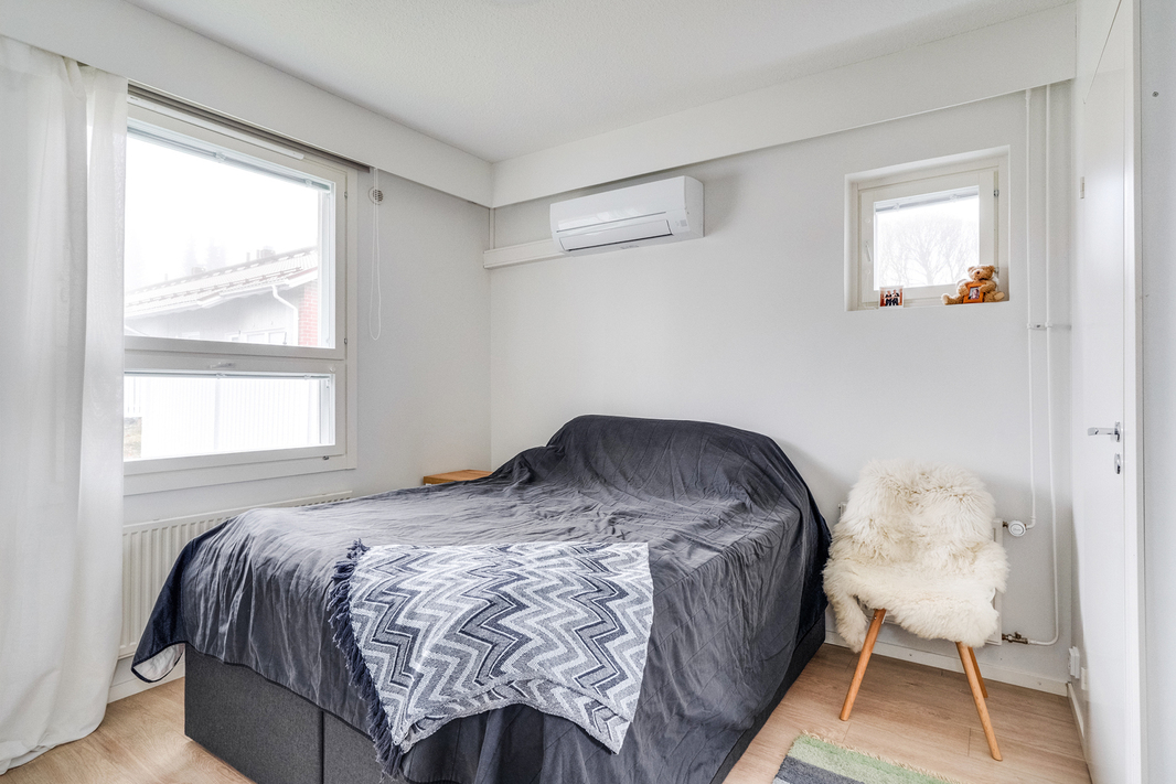 | Makuuhuoneen kuvaus | Makuuhuoneessa hypridilattia. Makuuhuoneessa vaatehuone, liukuovikaapisto sekä ilmalämpöpumppu. |