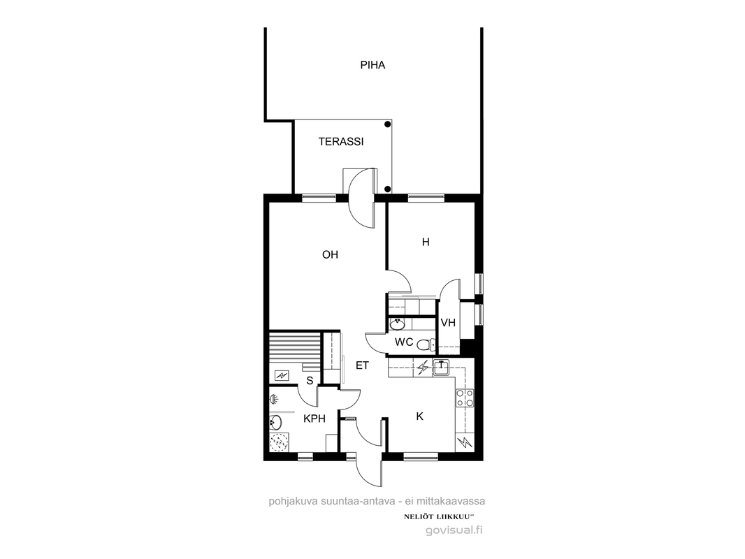 | Huoneistoselitelmä | 2h+k+kph+s+terassi (Yj:n mukaan 2h+k+s) |