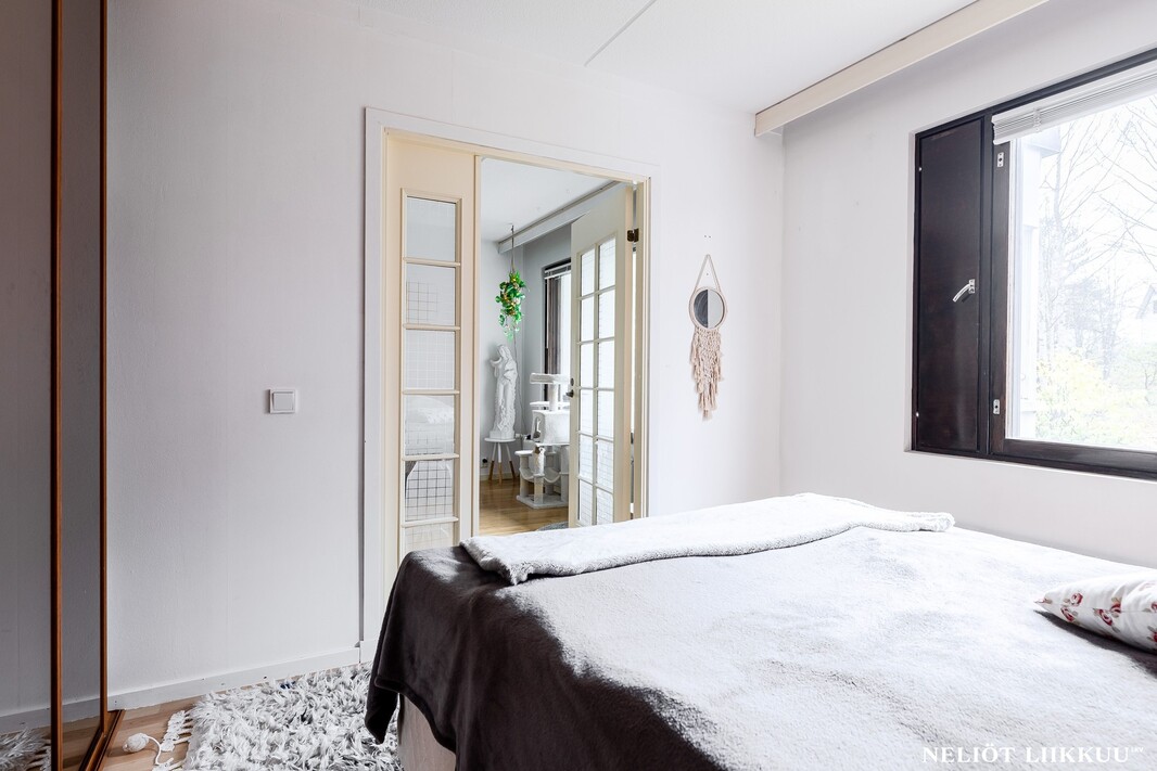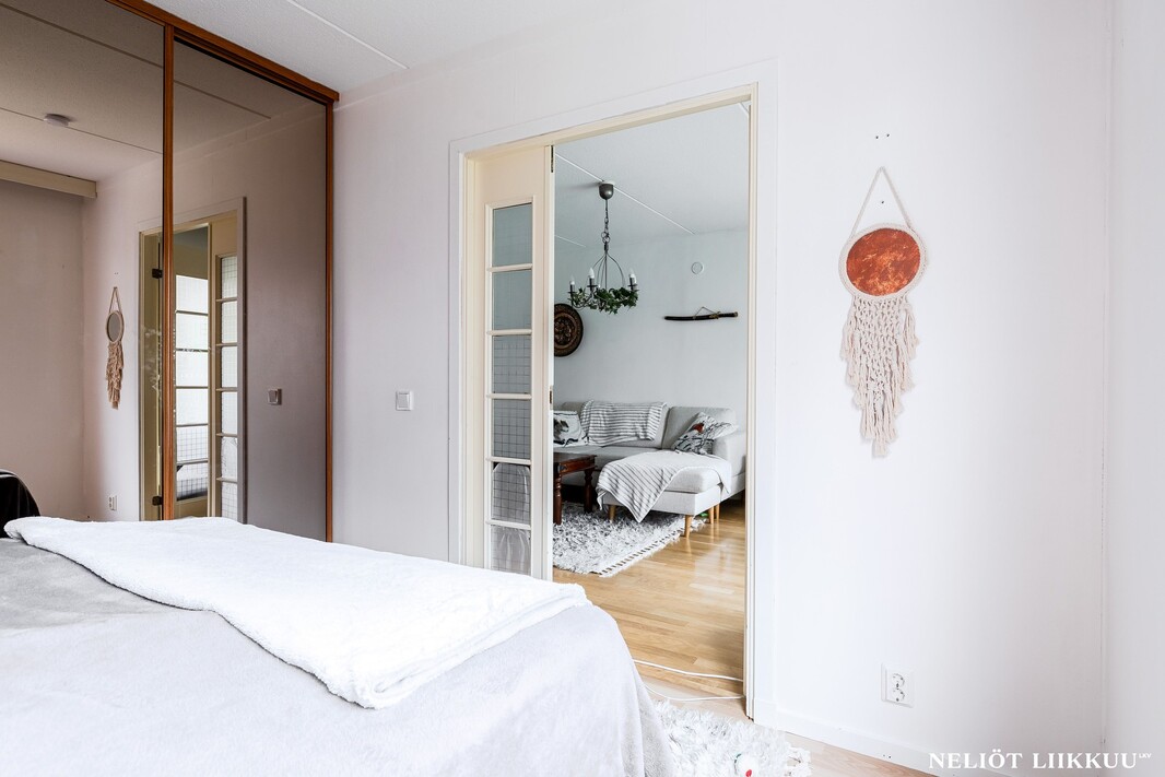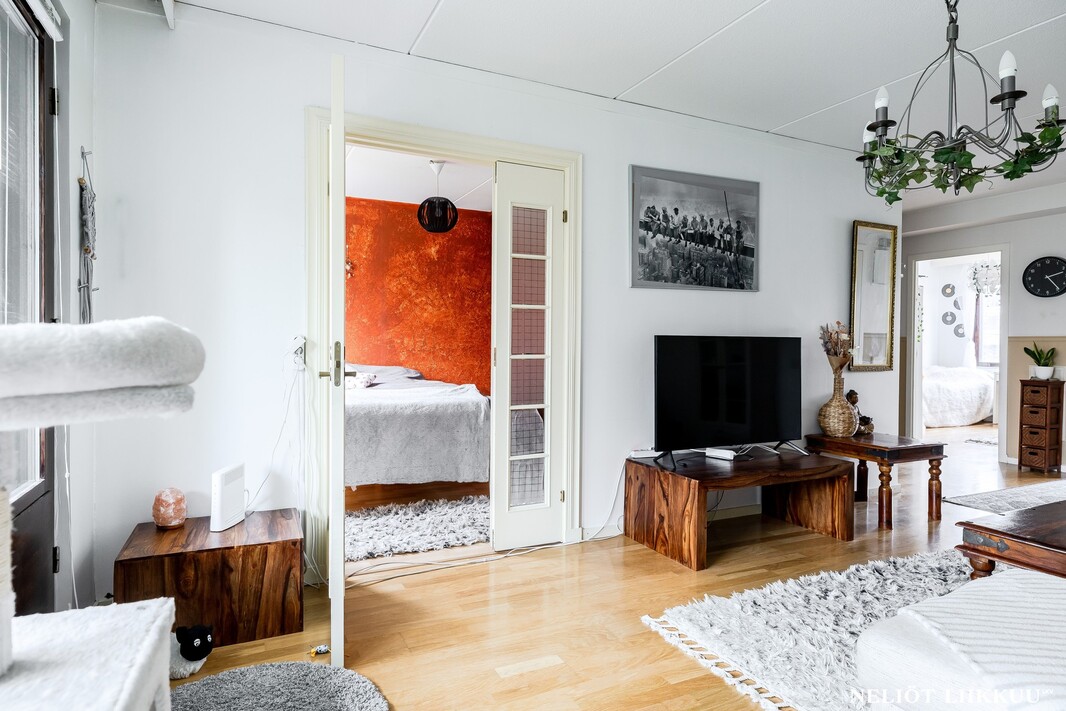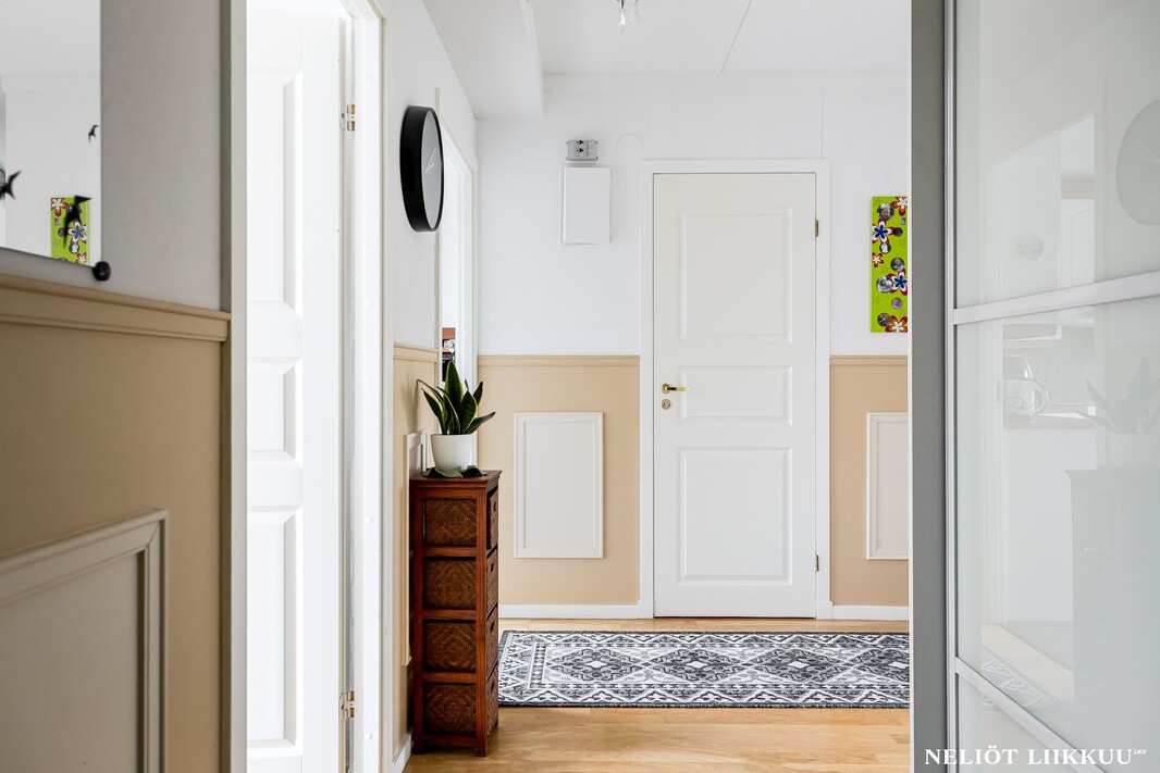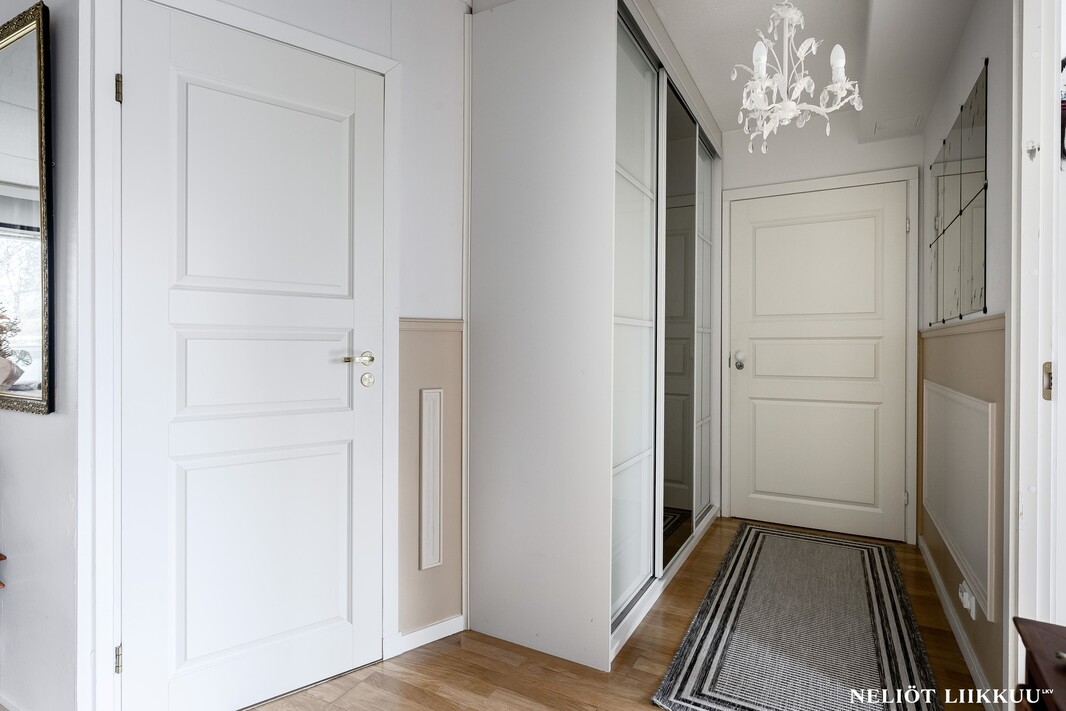 Tervetuloa tutustumaan tähän valoisaan ja hyvin pidettyyn kolmioon, jossa on tilaa elää ja viihtyä. Kodissa on kaksi makuuhuonetta, joista molemmissa on kaapistot. Lisäksi erillinen, erittäin tilava vaatehuone tarjoaa runsaasti säilytystilaa ja soveltuu tarvittaessa mainiosti myös työtilaksi.
