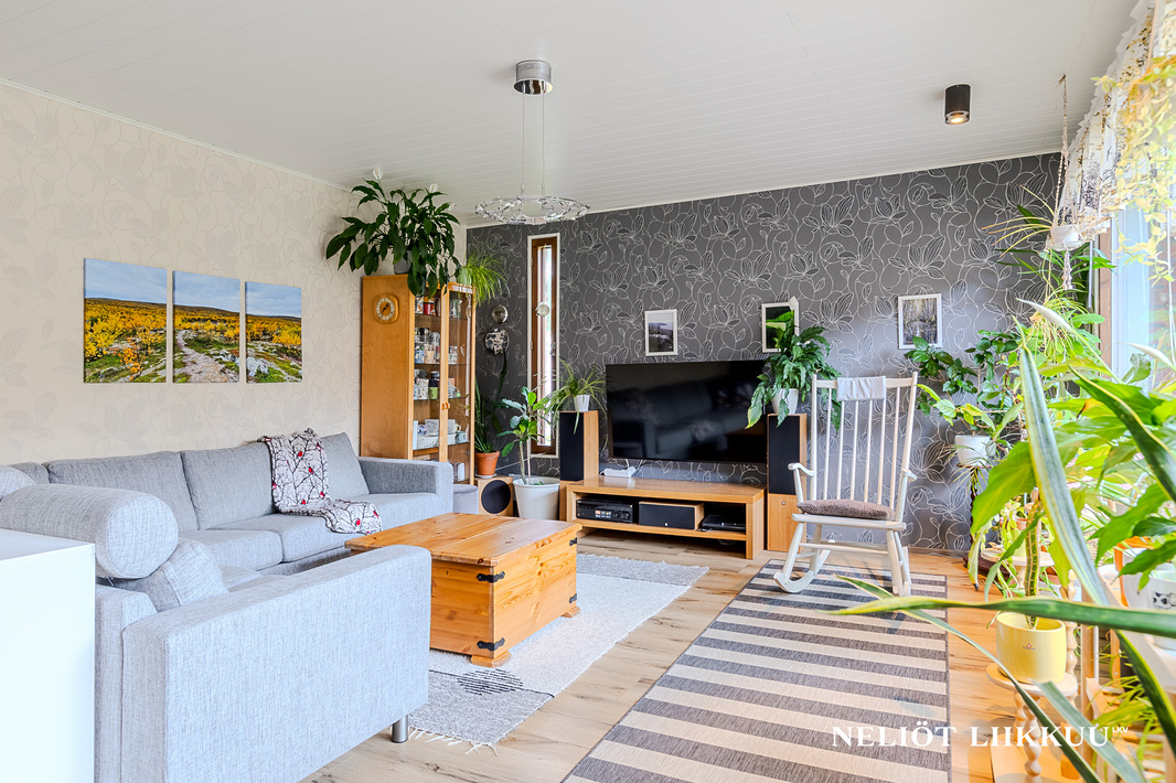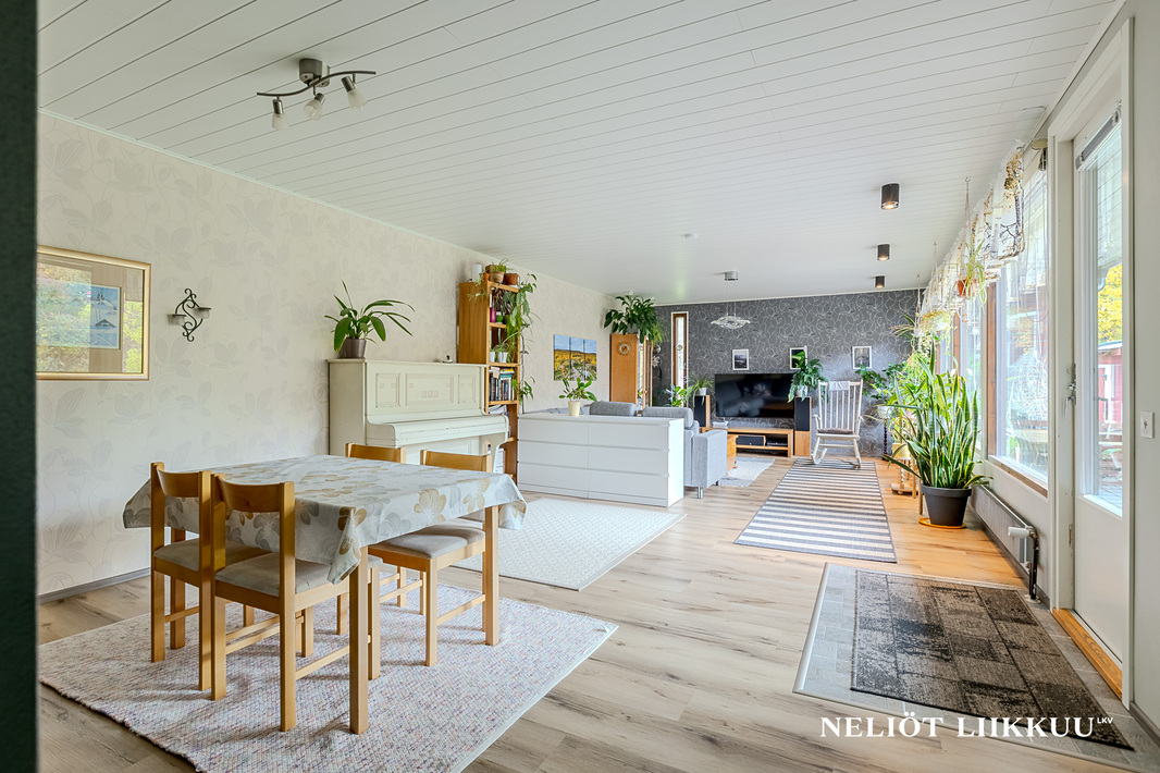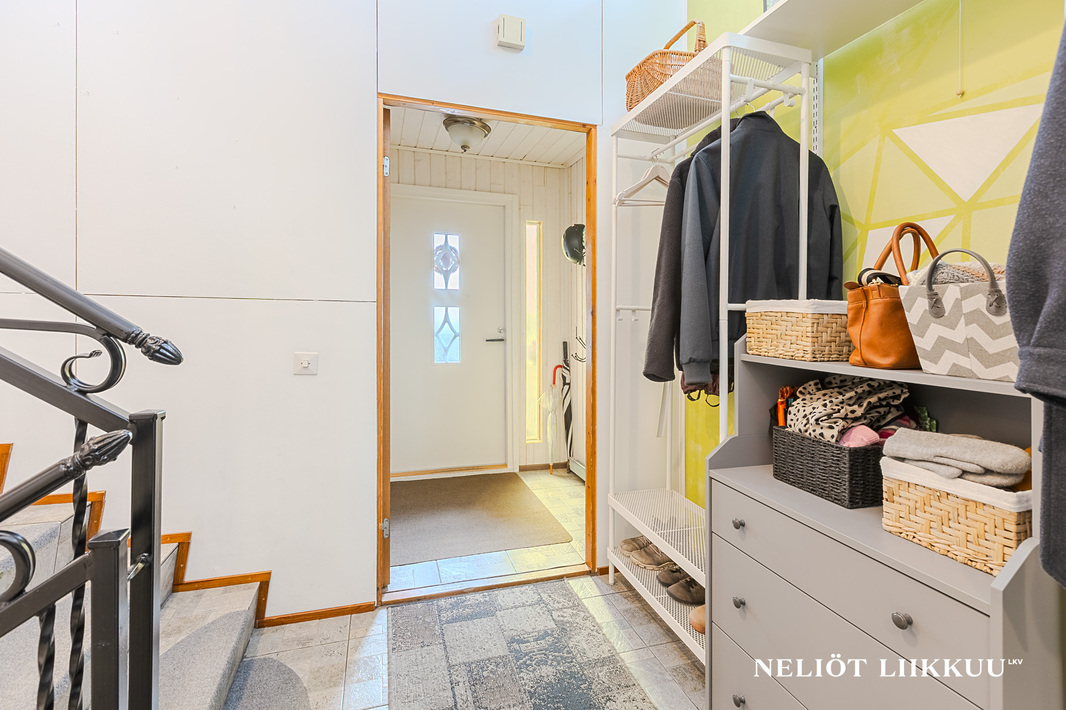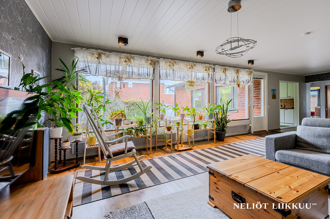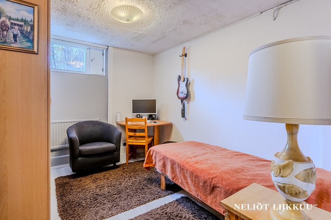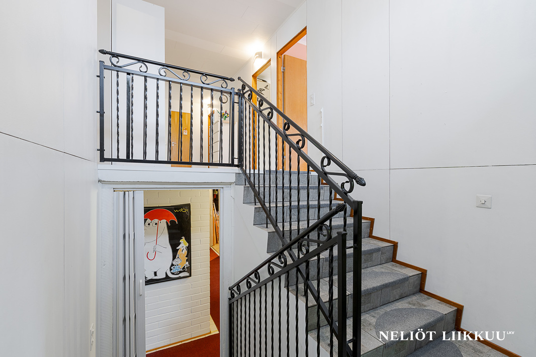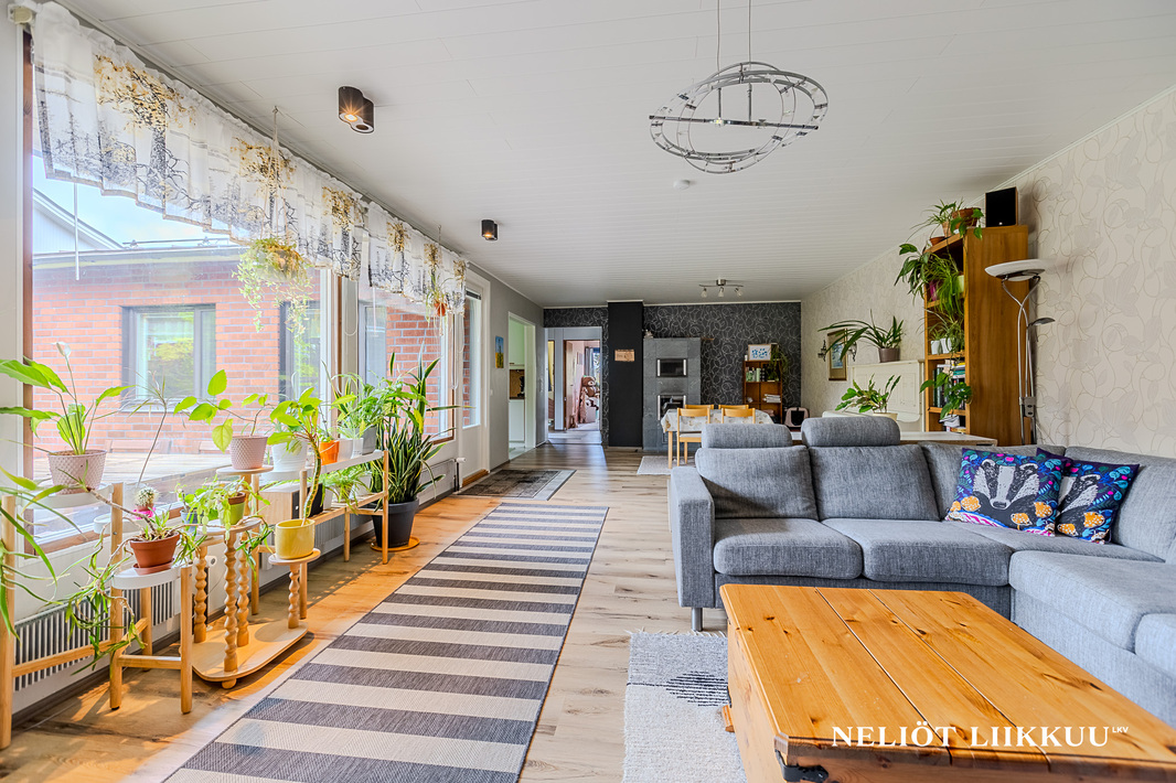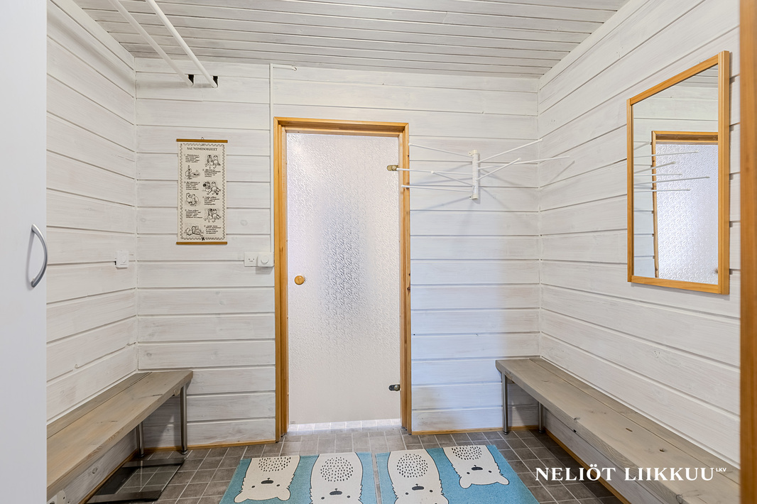 Asuinneliöitä on 128 m², ja lisäksi alakerran kellaritilat tarjoavat runsaasti lisätilaa elämiseen ja harrastamiseen. Takkahuone, saunatilat, kylpyhuone, toinen wc, askarteluhuone, kodinhoitohuone, tekninen tila sekä varasto, täydellinen esimerkiksi harrastuksiin, työskentelyyn tai oleskeluun. Näitä tiloja ei lasketa virallisiin asuinneliöihin, mutta ne tuovat arkeen joustavuutta ja vaihtoehtoja.