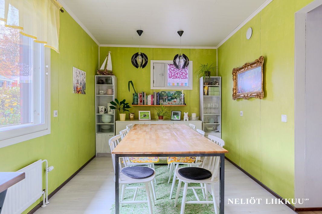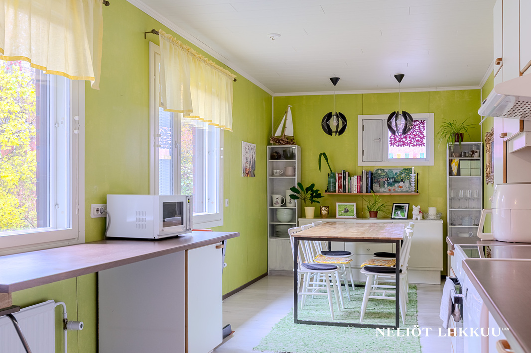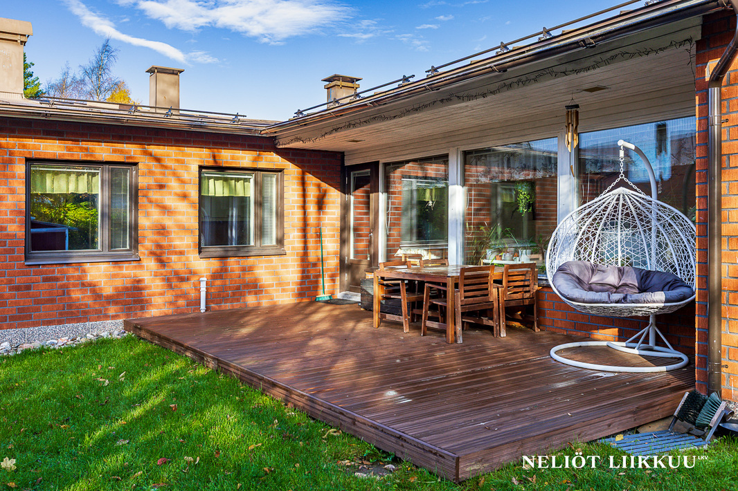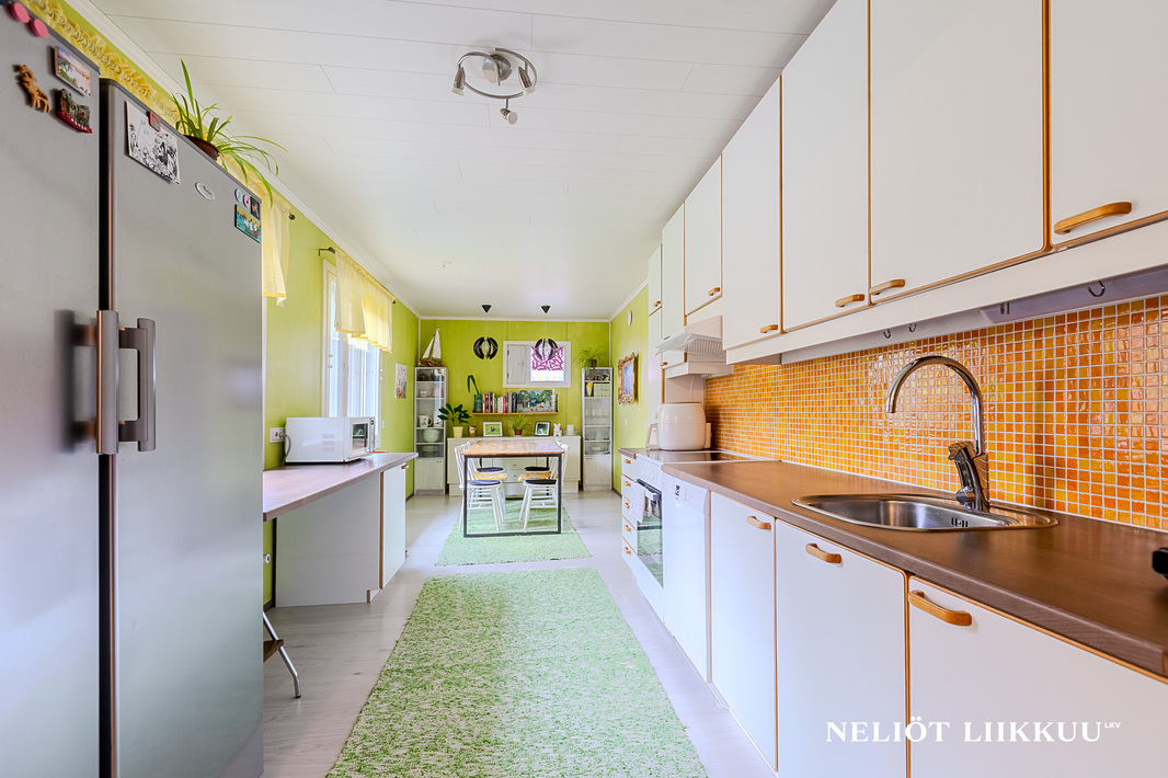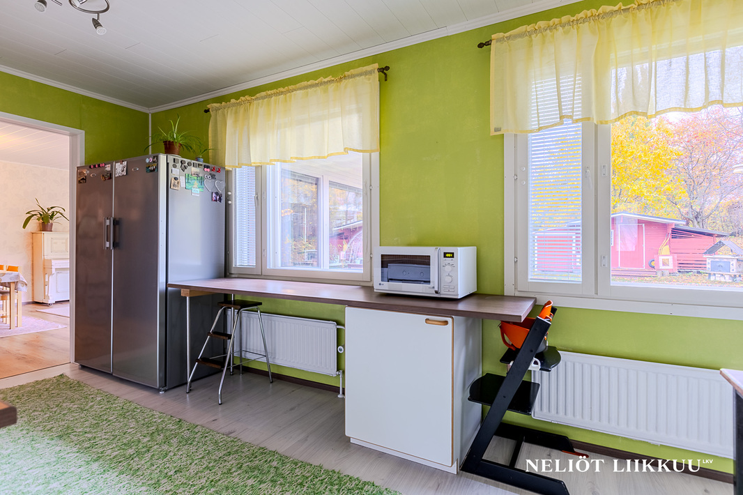 | Tehdyt remontit | 2005 Kiinteistö liitetty kaukolämpöön, öljykattila ja öljysäiliö poistettu 2008 Alakerran WC remontoitu 2012 Ulko-ovet (2kpl) ja keittiön ikkunat uusittu 2007-2015 Asuintasoa pintaremontoitu 2017 Keittiö ja eteinen remontoitu 2018 Peltikatto maalattu ja autotallin osalle asennettu huopakatto 2018 Sadevedet ohjattu kivipesiin 2019 Kodinhoitohuone remontoitu 2019 Sauna ja pukuhuone remontoitu kauttaaltaan 2020 Sisäpihalle: terassi, sadevesikourut ja -syöksyt uusittu, lumiesteet 2021 Alakerran takkahuoneen peräseinän eristeet vaihdettu, katto ja seinät maalattu, lattiamatto uusittu 2022 WC hanat uusittu (2kpl) 2022 Olohuoneen ja käytävän parketti vaihdettu vinyylilankkuun 2023 Pesuhuone remontoitu 2023 Olohuoneeseen asennettu leivinuuni, Nunnauuni 2S Hestia Solo 2018/2023/2024 Ulkoverhoilun huoltomaalaus 2025 Liesi uusittu 2025 Lämmityspiirin kiertovesipumppu uusittu |
