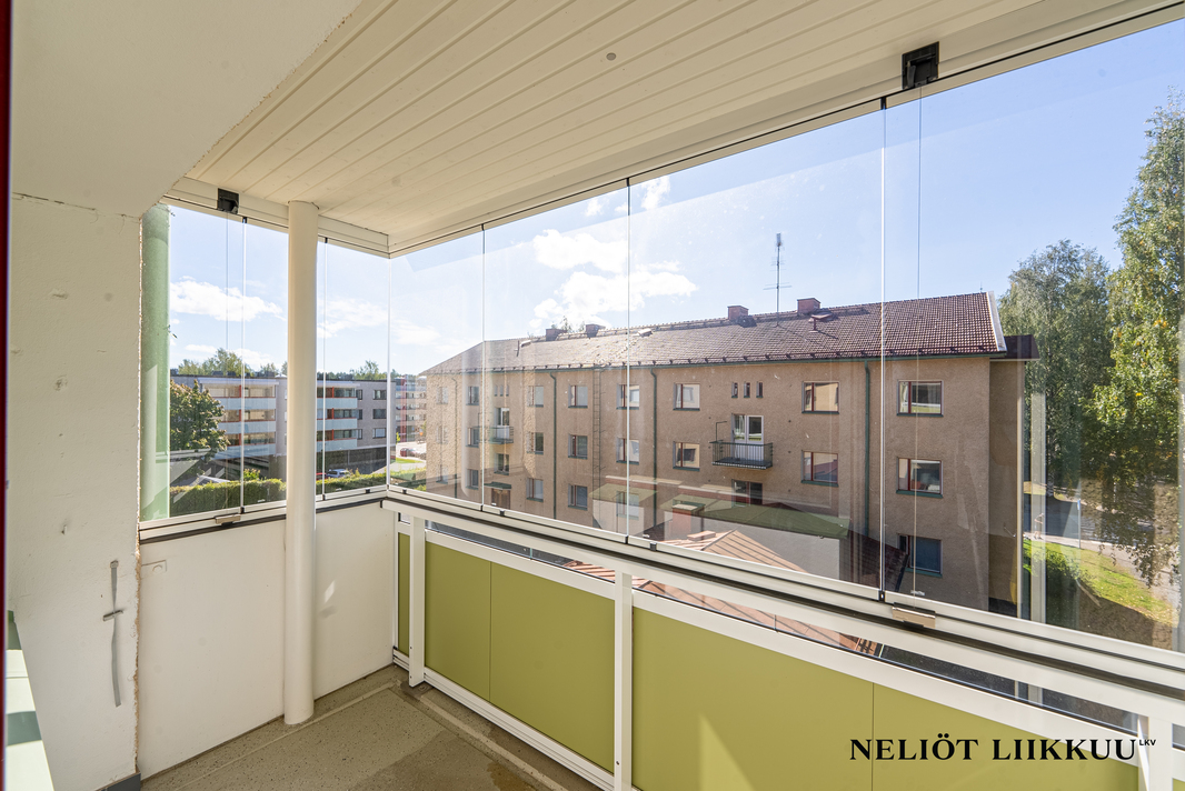 • Lasitettu Parveke: Nauti kesäpäivistä ja auringosta etelän suuntaan avautuvalla lasitetulla parvekkeella.