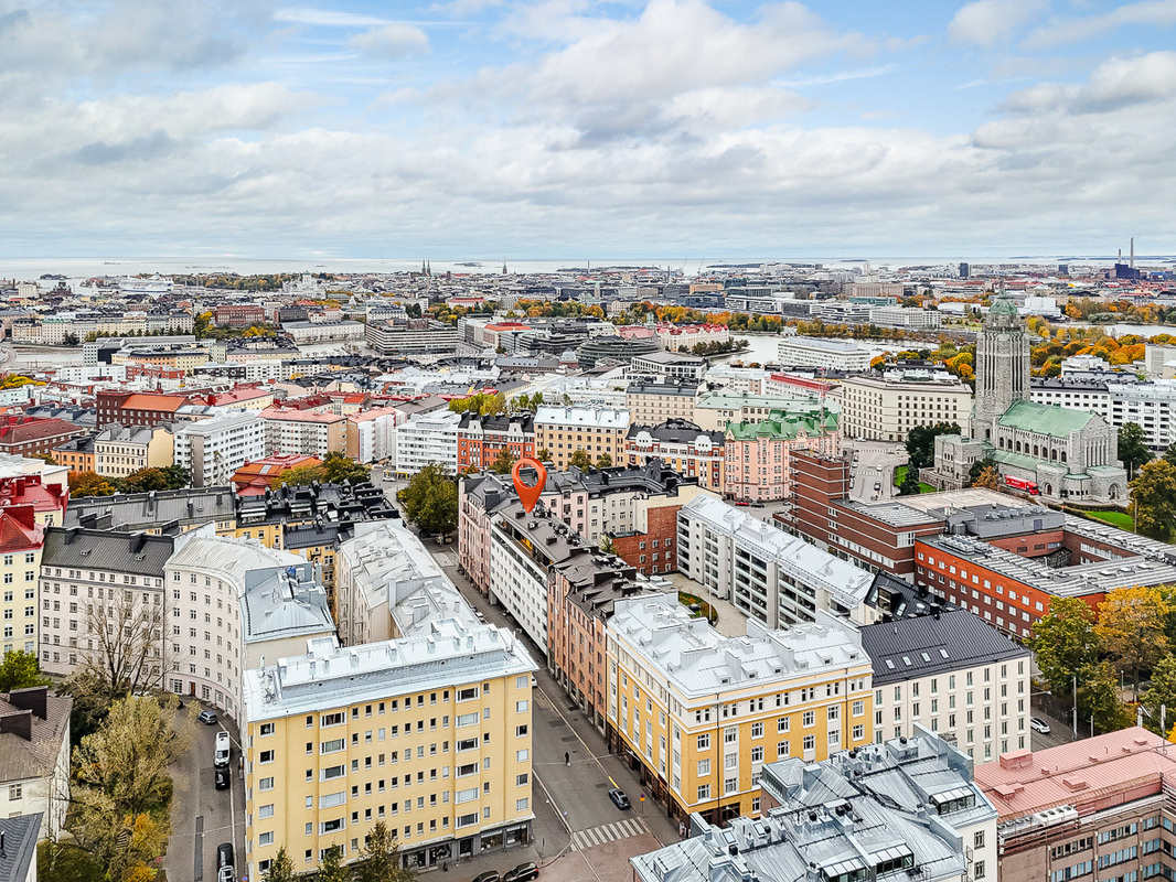 Asunnon sijainti Kallion sydämessä on samaan aikaan viihtyisä ja toimiva. Ympäriltä löytyvät kaikki, mitä tarvitset urbaanilta kaupunkiasumiselta. Vastapainoksi alueelta löytyy vehreyttä ja rauhallisuutta aivan kotioven ääreltä.