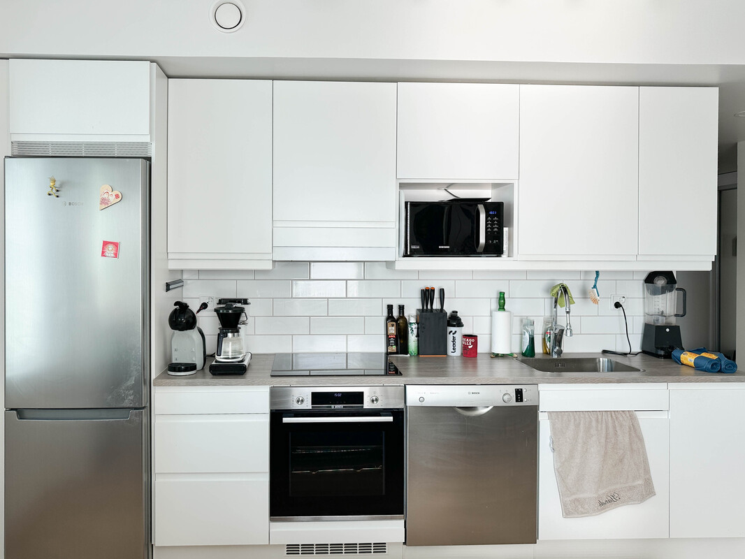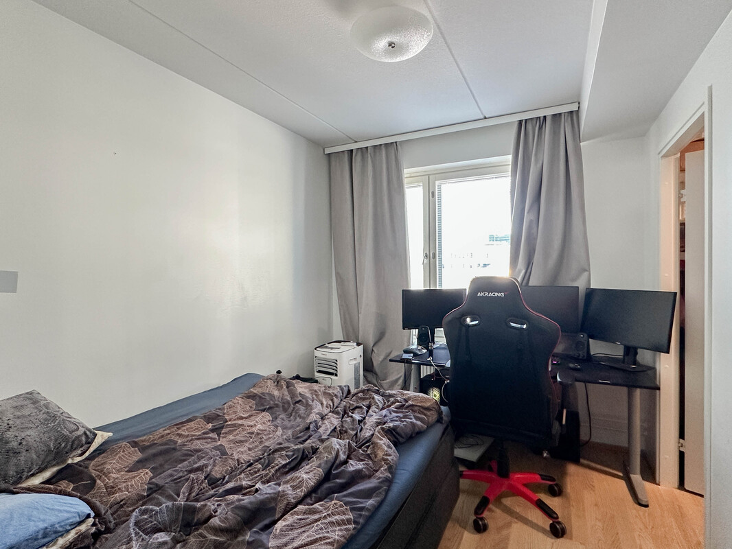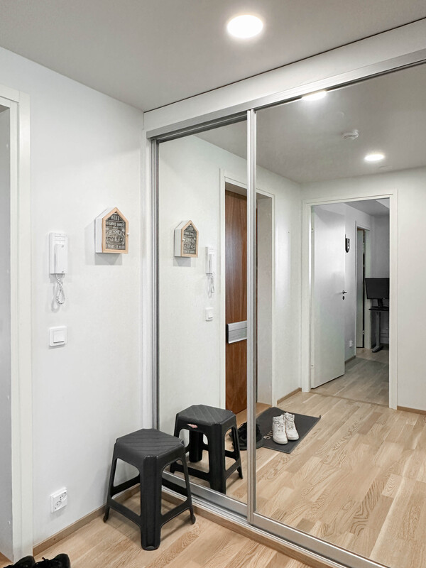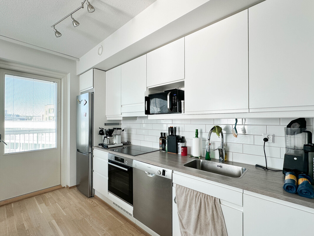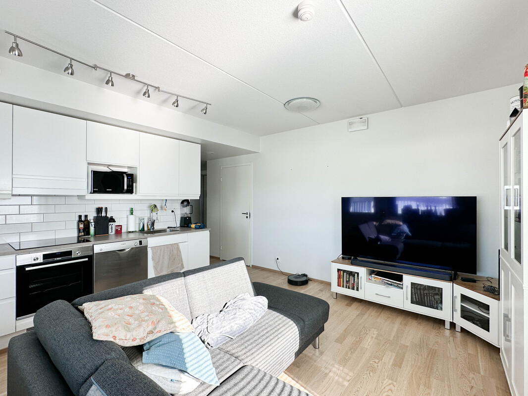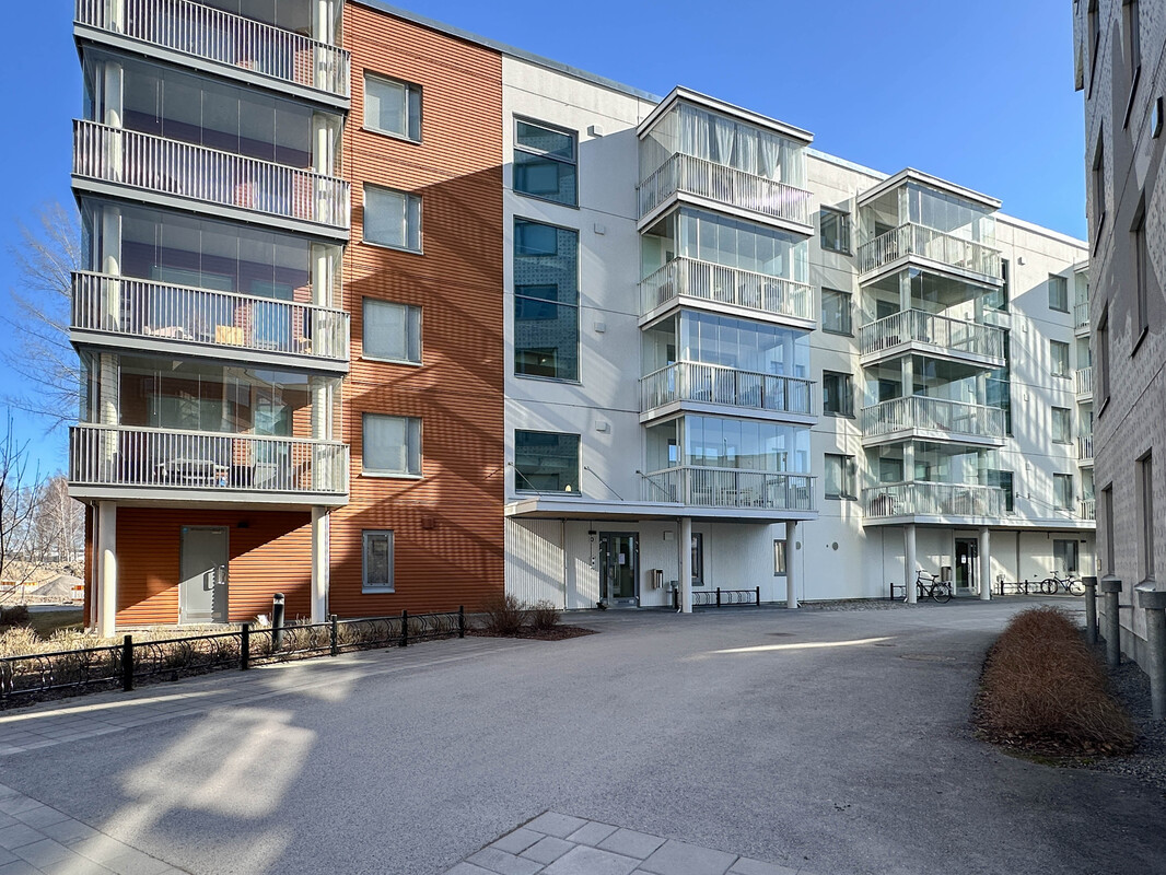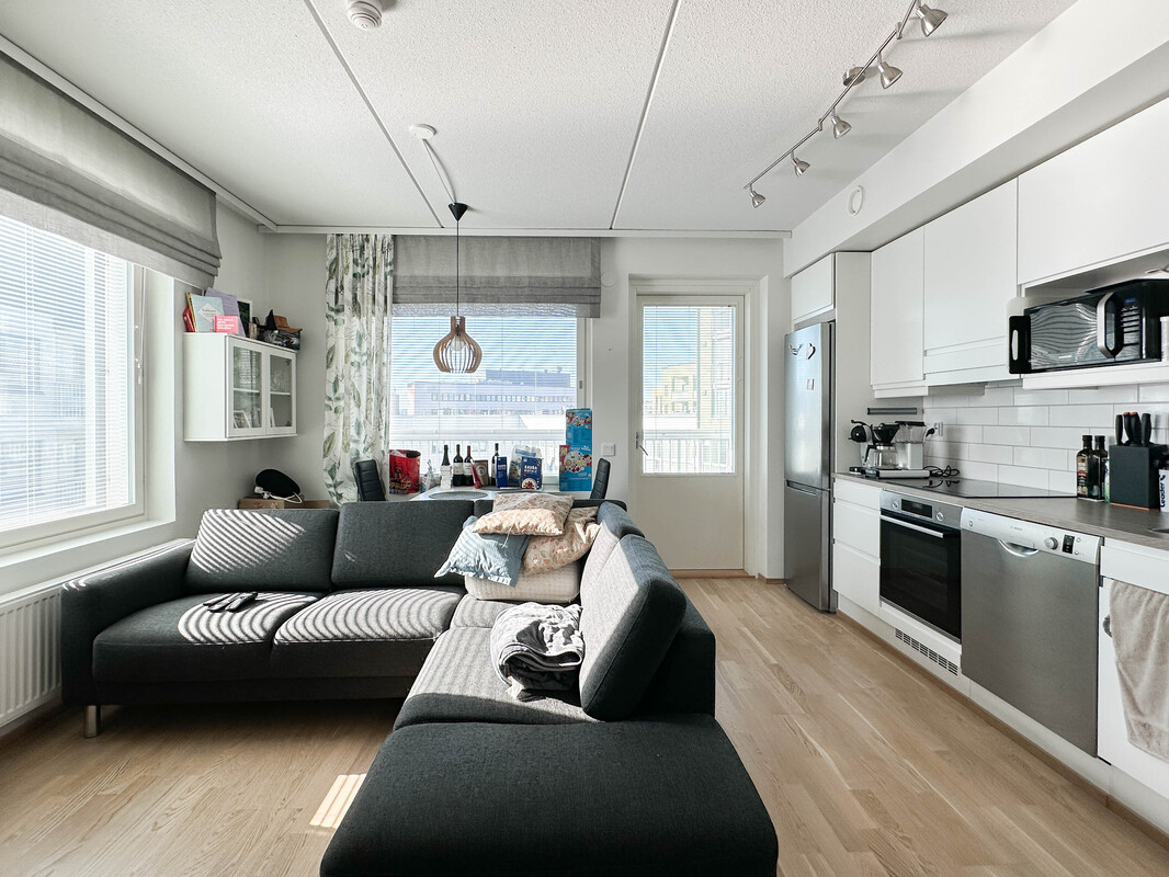 Kodin keskiönä toimii tilava olohuone, jonka yhteydessä on avokeittiö, käynti lasitetulla parvekkeelle sekä makuuhuoneeseen, josta löytyy vaatehuone. Kaappitilaa on hyvin myös eteisessä. Asunto sijaitsee ylimmässä kerroksessa ja on hyvin valoisa sekä tilava.