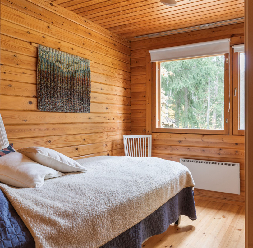| Makuuhuoneen kuvaus | Mh1: Lattiat lautaa, seinät puuta. Sis. kaksi puista liukuovikaappia yläkaappeineen. Mh2: Lattiat lautaa, seinät puuta. Sis. vaatekaapin. Mh3: Lattiat lautaa, seinät puuta. Sis puisen kulmakaapin sekä puisen liukuovikaapin yläkaappeineen. Mh4: Lattiat lautaa, seinät puuta. Sis. puisen liukuovikaapin yläkaappeineen. Seinällä olevat kaapit eivät kuulu kauppaan |