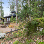 | Pihan kuvaus | Piha on helppohoitoinen. Lavitsa ja sen läheisyydessä oleva pöytä talon pohjoispuolella kuuluvat kauppaan. Luonnonmukainen metsä ympäröi taloa. Puut suojaavat hyvin taloa. Takapihalla on aidattu alue, jonne käynti on suoraan takaovelta. Rinteen alaosassa on autotalli/varasto/paja ja ateljee/työtila (lämpimiä tiloja). Tilan itäpuolella on puutarhavaja ja puuvaja (kylmiä). Päärakennus sijaitsee rinteen päällä. Sen pohjoispuolella on kasvihuone. |