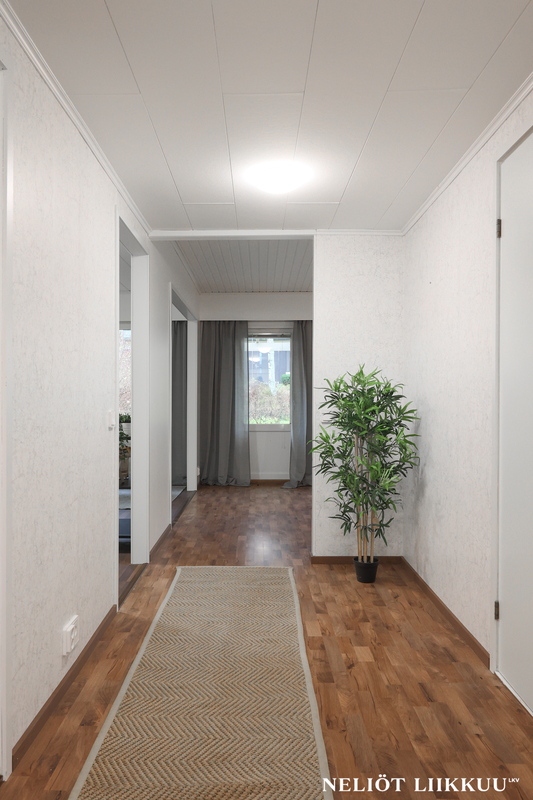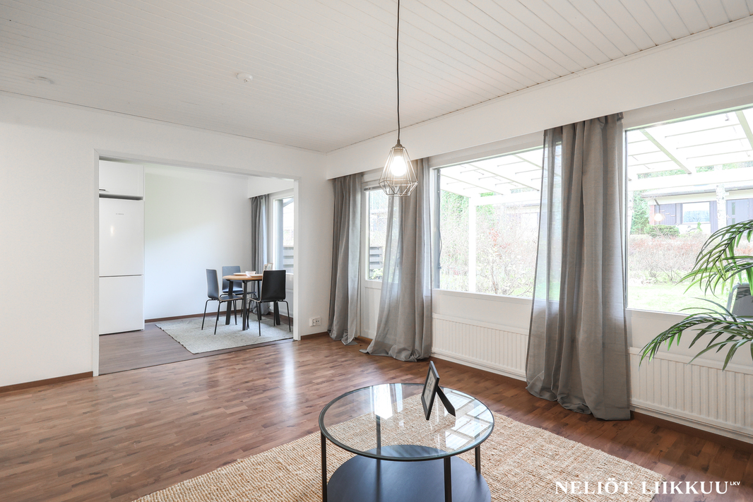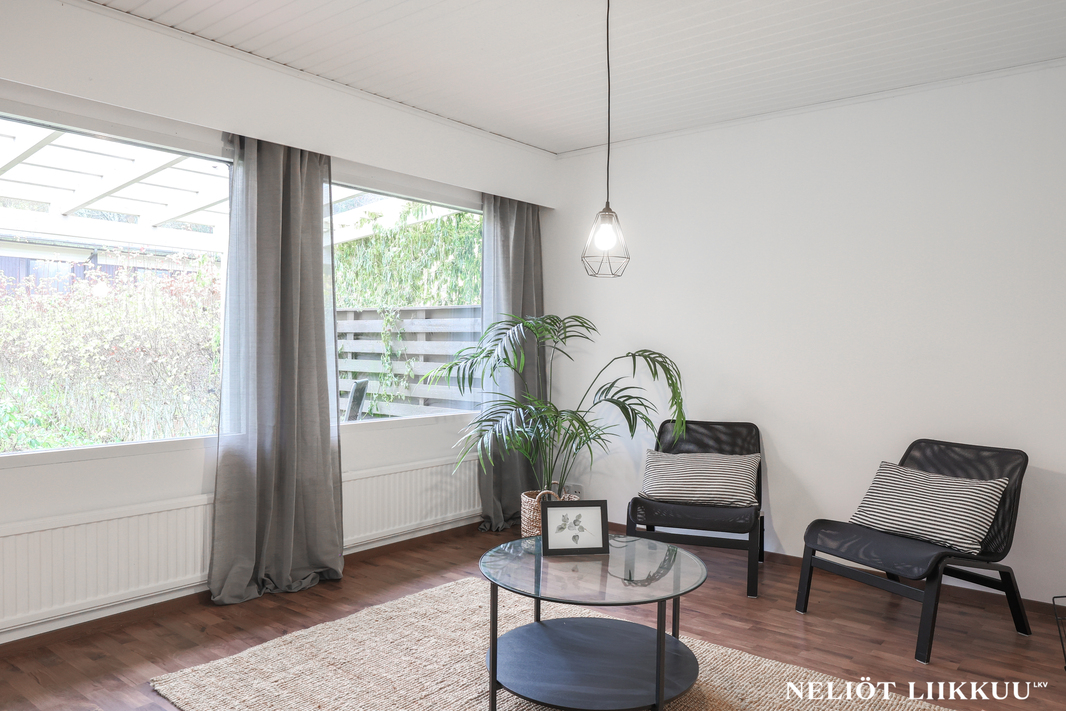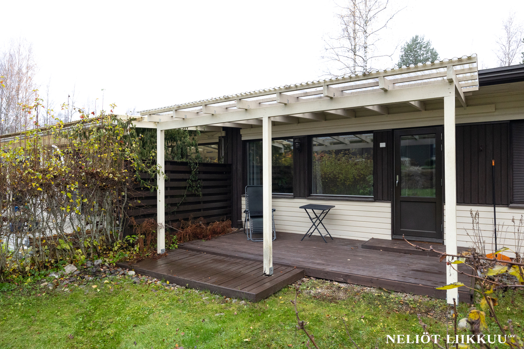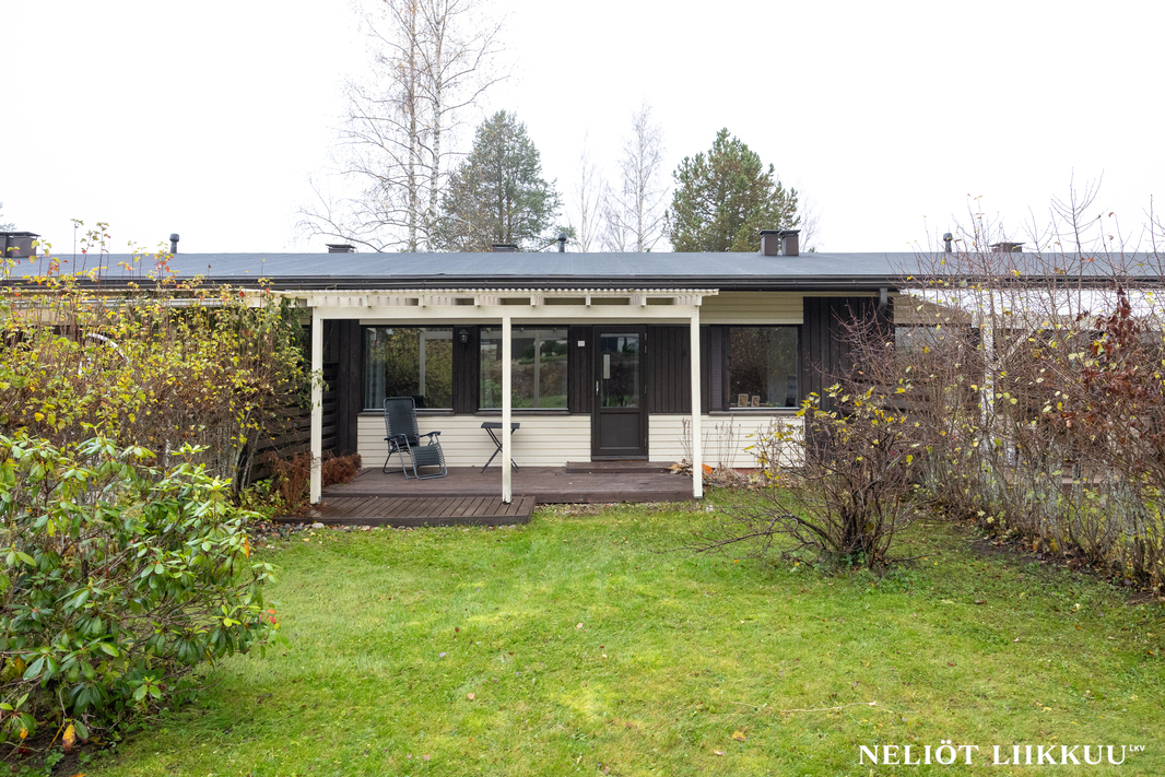 Tämä koti tarjoaa toimivan ja avaran pohjaratkaisun: valoisa olohuone, tilava keittiö, kaksi makuuhuonetta sekä oma sauna. Olohuoneesta avautuu käynti suurelle, vehreälle ja suojaisalle takapihalle, jossa on tilaa niin rentoutumiseen kuin lasten leikkeihin tai puutarhaharrastuksille.
