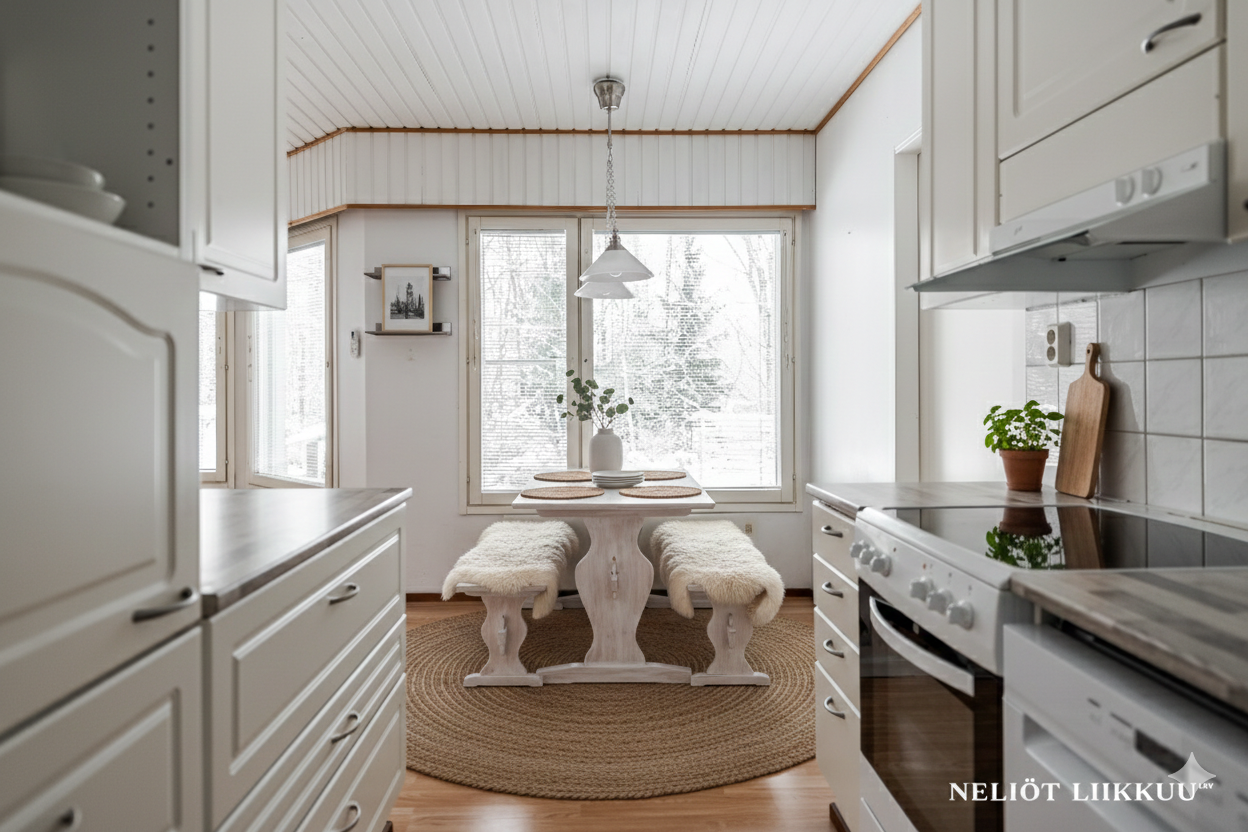 HoitovastikeToijalan rauhallisella ja luonnonläheisellä alueella sijaitseva hyväkuntoinen päätyasunto yhdessä tasossa. Tämän valoisan kolmion sijainti on poikkeuksellinen, sillä sen suojaisa takapiha terasseineen rajautuu suoraan kauniiseen metsikköön, tarjoten omaa rauhaa ja yksityisyyttä. Kodin tilat ovat vaaleat ja toimivat: olohuone on tilava, ja keittiö on varustettu nykyaikaisilla kodinkoneilla. Arjen sujuvuutta lisäävät oma sauna, erillinen wc sekä käytännöllinen kodinhoitohuone, josta on kätevä kulku suoraan ulos. Asunto Oy Toijalan Käpypolku 1 on omalla tontilla sijaitseva hyvin hoidettu yhtiö, jossa on tehty säännöllisesti huoltotoimenpiteitä ja tuleviin kunnostuksiin on varauduttu suunnitelmallisesti. Lämmitysmuotona toimii sähkö, jota tukee energiatehokas ilmalämpöpumppu, ja huoneistoon on asennettu valokuituyhteys. Tämä heti vapaa päätyasunto sopii erinomaisesti rauhallista ja helppoa asumista arvostavalle. Myynti ja lisätiedot Piia Rosvall I Neliöt Liikkuu Lkv 044 768 8109 piia.rosvall@neliotliikkuu.fi