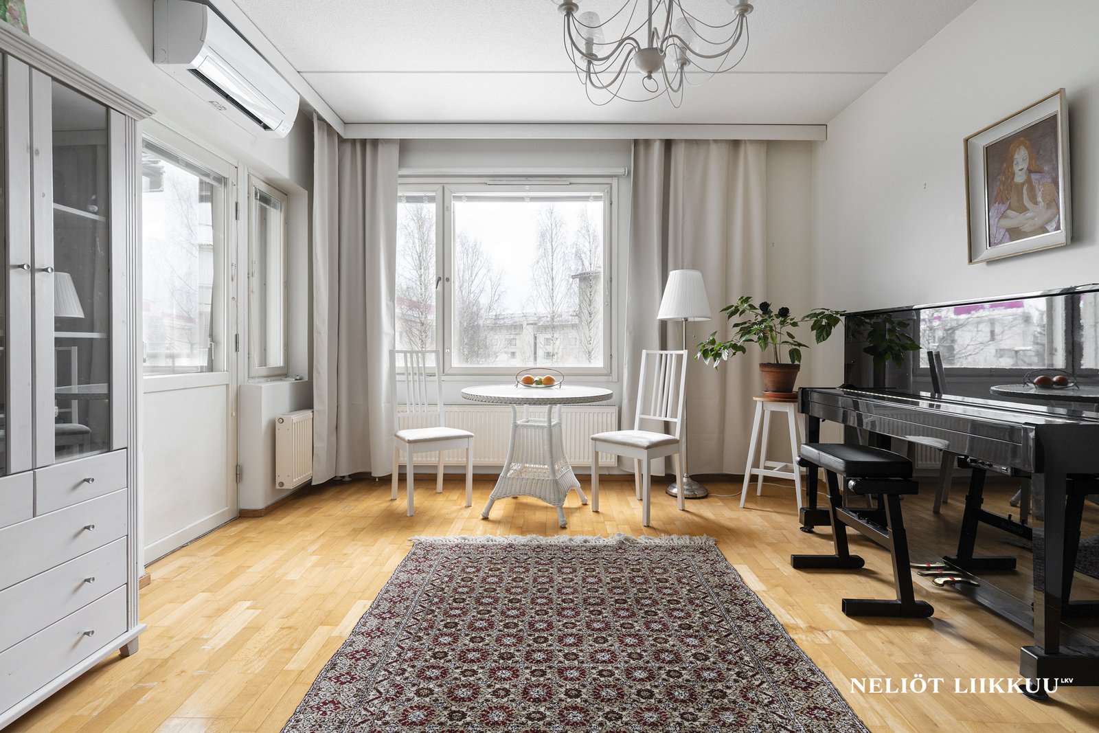 HoitovastikeTehokas kaksio Käpylän sydämessä – oma lasitettu parveke. Esteettömässä hissitalossa sijaitseva valoisa 4. kerroksen kaksio tarjoaa käytännöllisen ja viihtyisän kodin. Oma lasitettu parveke lisää asumismukavuutta, ja ilmalämpöpumppu pitää huoneiston miellyttävän viileänä kesähelteillä. Hyvin hoidettu taloyhtiö omalla tontilla tarjoaa asukkailleen runsaasti lisätiloja ja palveluita: suuret kerhotilat, kuntosalilaitteet sekä oma uima-allas tekevät arjesta ja vapaa-ajasta entistä mukavampaa. Kaikki arjen palvelut ja sujuvat liikenneyhteydet ovat aivan kodin läheisyydessä, joten liikkuminen ja asiointi onnistuvat vaivattomasti. Tiedustelut LKV Ville Rantanen - Neliöt Liikkuu 045-118 6225