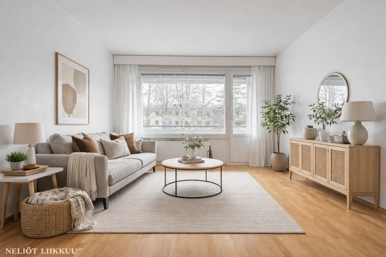 HoitovastikeRemontoimalla tästä itsellesi uuden kodin saat ensimmäisen kerroksen tilavan asunnon, jossa on paljon valoa ja avaruutta. Olohuone on avara ja sinne mahtuu mukavasti sekä sohva että ruokaryhmä. Olohuoneesta on käynti lasitetulle parvekkeelle, ja suuret ikkunat tuovat tilaan runsaasti luonnonvaloa. Asunnossa on erillinen keittiö sekä kaksi tilavaa makuuhuonetta. Kylpyhuone on remontoitu osana yhtiön linjasaneerausta v. 2012. Sijainti on erinomainen: lähellä ovat niin ruokakaupat kuin, pikarattikka ja bussiyhteydetkin. Kävelyetäisyydellä löytyvät ruokakauppa, kirjasto, terveysasema, päiväkodit ja koulut. Läheiset Keskuspuisto sekä Pirkkolan ja Oulunkylän urheilupuistot tarjoavat upeat mahdollisuudet ulkoiluun ja liikuntaan. Tiedustelut Ville Rantanen 045-118 6225, ville.rantanen@neliotliikkuu.fi