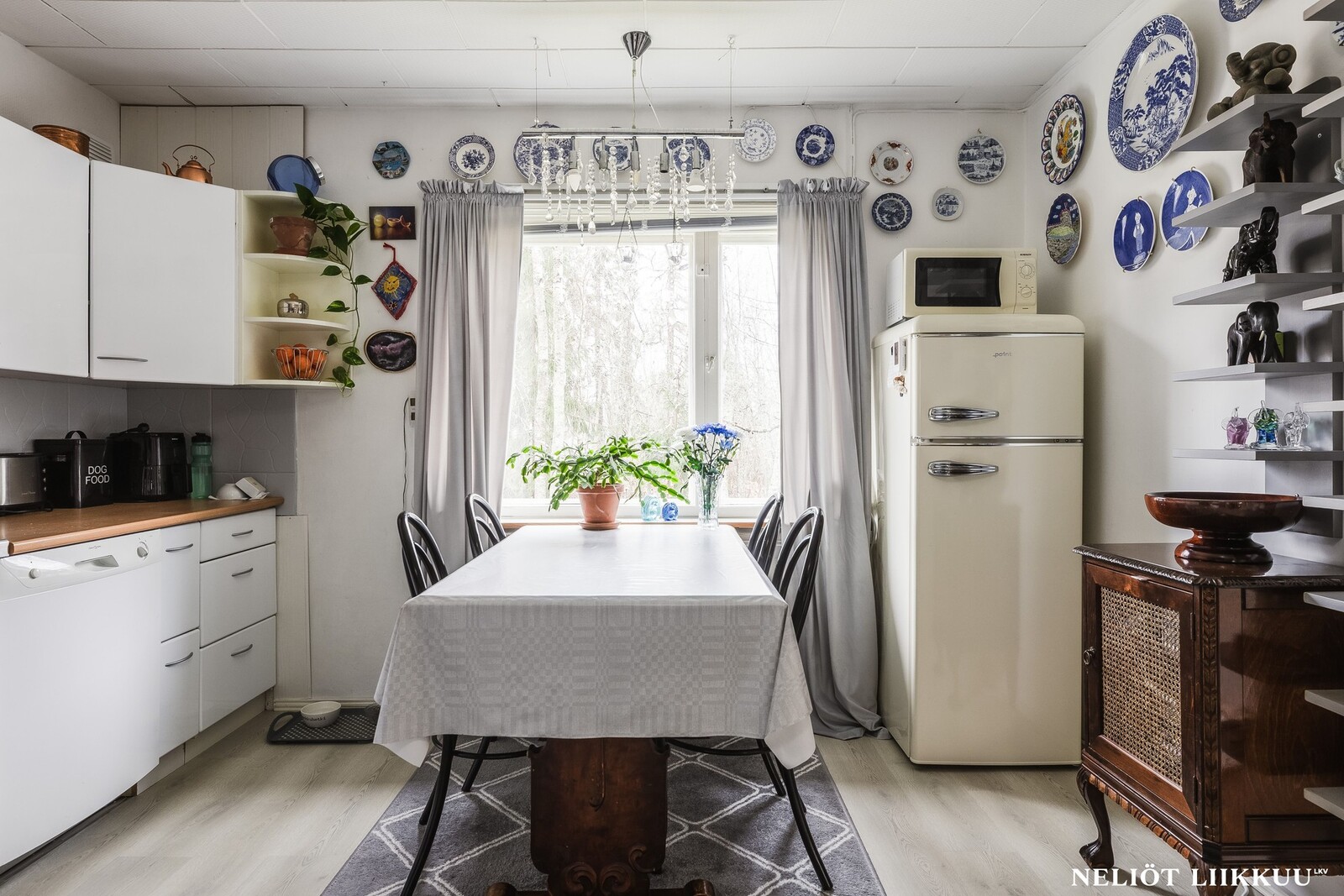 Velaton myyntihintaViehättävä pieni omakotitalo, edullista ja viihtyisää asumista omalla tontilla! Tervetuloa tutustumaan hurmaavaan kahden makuuhuoneen omakotitaloon, jossa on sopivassa suhteessa tehtyjä remontteja ja vielä mahdollisuuksia toteuttaa omia ideoita. Kodissa on uusittu mm. peltikate vuonna 2021 sekä käyttövesiputket vuonna 2023, joten isoja perusasioita on jo päivitetty. Keittiössä on hyvin tilaa sekä ruoanlaittoon että yhdessäoloon. Tunnelmaa tuo perinteinen puuhella. Kylpyhuone ja sauna on uusittu vuonna 2008 ja kylpyhuoneessa on lattialämmitys. Talo lämpenee energiatehokkaasti vuonna 2024 asennetulla ilmalämpöpumpulla, mikä näkyy myös erittäin alhaisissa asumiskustannuksissa: sähkölaskut ovat olleet nykyisellä omistajalla vain noin 60 €/kk. Autoille löytyy suojaa tilavasta kahden auton katoksesta. Sen yhteydessä sijaitsee varastotila, joka kaipaa remonttia ja tarjoaa mahdollisuuden muokata tilasta juuri omaan käyttöön sopivan. Oma tontti, jolla rakennusoikeutta on yhteensä 220 m². Pihalta löytyy myös kunnostettu kaivo, josta saat kätevästi kasteluvettä puutarhaan. MYYNTI & YHTEYDENOTOT: Tommy Jannasch Kiinteistönvälittäjä LKV, LVV, KED p. 050 305 9699 / tommy@neliotliikkuu.fi Neliöt Liikkuu Lkv Oy Ab