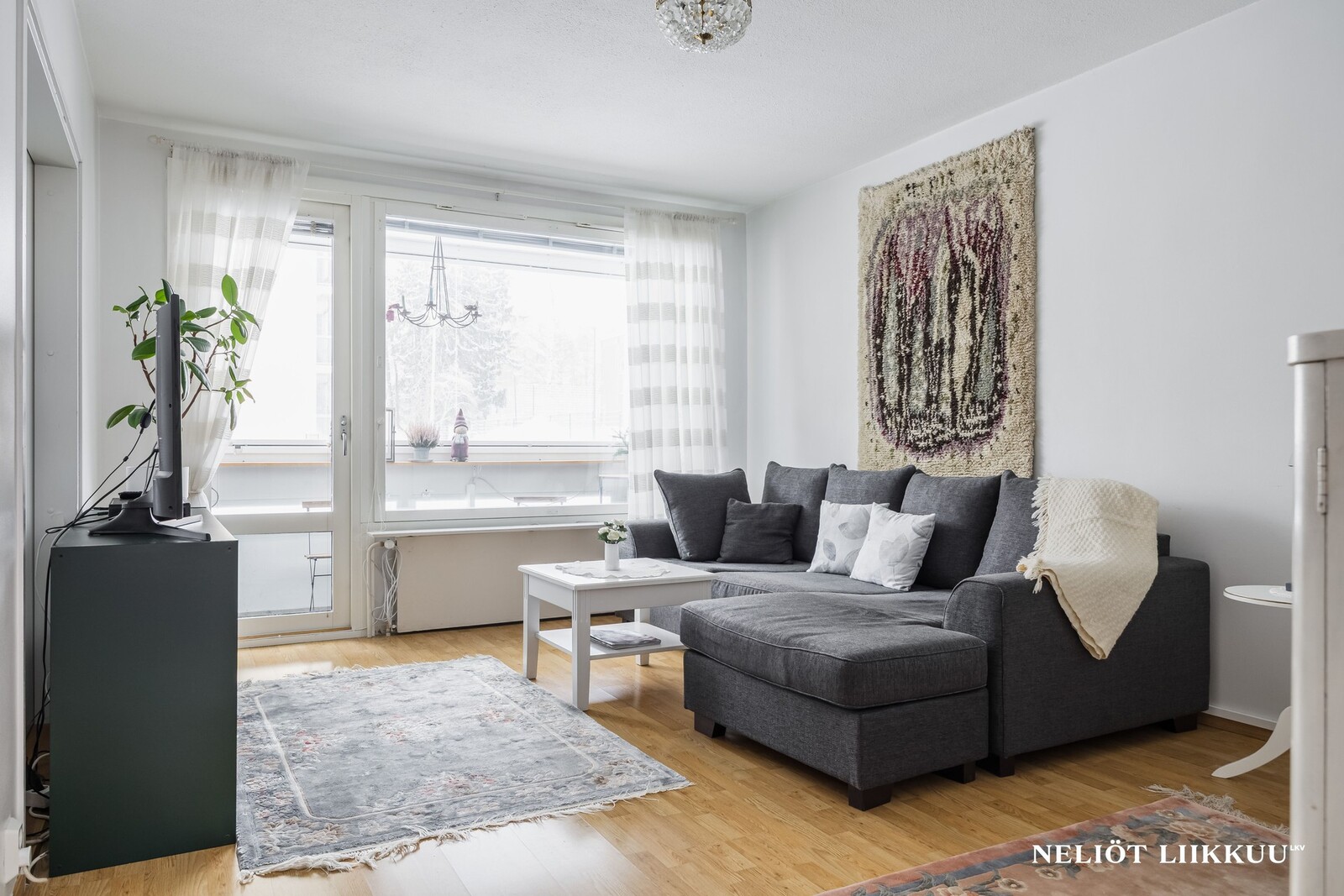 HoitovastikeViihtyisä koti Martinlaaksossa kahdella sisäänkäynnillä! Tervetuloa tutustumaan tähän ihastuttavaan läpitalon huoneistoon, joka sijaitsee ensimmäisessä kerroksessa rinnetontilla. Parvekkeen puoleiset ikkunat ovat maantasalla. Asunnolle on peräti kaksi sisäänkäyntiä ja näin persoonallisia sekä käytännöllisiä ratkaisuja tulee harvoin vastaan. Tilava eteinen tekee arjesta sujuvaa. Sisään mahtuu hyvin myös lastenvaunujen kanssa ja koko perheellä on reilusti tilaa pukeutua samanaikaisesti. Kylpyhuone sekä erillinen wc on uusittu linjasaneerauksen yhteydessä tyylikkäin ja ajattomin pintamateriaalein. Vaaleansävyisessä erillisessä keittiössä on runsaasti tilaa isommallekin ruokailuryhmälle. Valoisasta olohuoneesta on käynti omalle lasitetulle kaakko etelä suuntaiselle parvekkeelle. Säilytystilaa löytyy mukavasti kaapistojen ja vaatehuoneen ansiosta ja lisäksi käytössäsi on kellarikomero. Asunto Oy Raiviosuonmäki 5 on vuonna 1970 valmistunut omalla tontilla sijaitseva hyvin hoidettu taloyhtiö. Suurimmat remontit on jo tehty, joten voit asua huolettomin mielin ilman näköpiirissä olevia isoja korjaushankkeita. Asukkaiden käytössä on oma kuntosali sekä linjasaneerauksen yhteydessä uudistetut viihtyisät saunaosastot. Sijainti on erinomainen. K Supermarket löytyy aivan vierestä, Martinlaakson kattavat palvelut ja kehäradan juna asema ovat lyhyen kävelymatkan päässä, ja bussiyhteydet kulkevat läheltä eri puolille pääkaupunkiseutua. Koulu ja päiväkoti, myös ruotsinkielinen, sijaitsevat kävelyetäisyydellä. Alue tarjoaa monipuoliset ulkoilu ja liikuntamahdollisuudet. Lähietäisyydellä on useita lenkkipolkuja, puistoalueita, uimahalli sekä kuntosaleja. Lämpimästi tervetuloa tutustumaan ja ihastumaan tähän uuteen kotiin. Soita ja sovi aika yksityisesittelylle! Myyntiä hoitaa: Emilia Juvonen Kiinteistönvälittäjä, LKV, LVV emilia.juvonen@neliotliikkuu.fi 0505750438